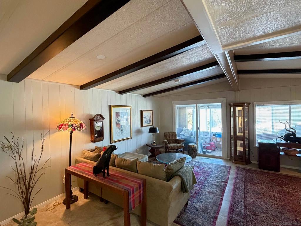 Remodeled home with VIEWS! Relax in the living room or the attached California room and enjoy the views of the Tierrasanta hills, watch the palm trees sway w/peak views of the golf course. Nice open floor plan with pretty kitchen with white cabinets, granite counter tops & kitchen island. Large dining room opens to the kitchen, perfect for entertaining! Central AC, Large primary suite with a remodeled bathroom and walk in closet. CA room wraps around the home giving you extra space. Wonderful area, you will love living here! 55+