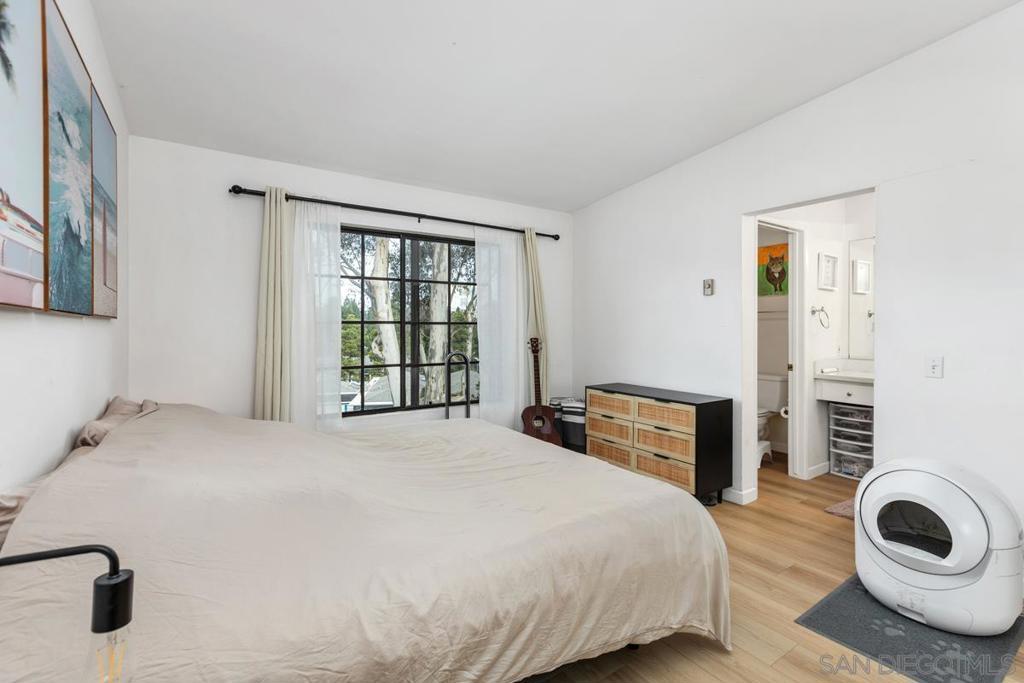 Top-floor La Jolla condo with views in the well-kept Boardwalk community—tucked off the street for added peace and privacy. Take in a panoramic outlook from a bright, open living room. Vaulted ceilings, crown molding, a cozy fireplace, new LVP flooring and in-unit washer/dryer. Two large assigned parking spaces. Stroll to UCSD, shopping, restaurants, and the movies. West of I-5 and just minutes to freeways, top hospitals, and La Jolla’s beaches. Great as a full-time residence, campus-close getaway, or long-term investment.