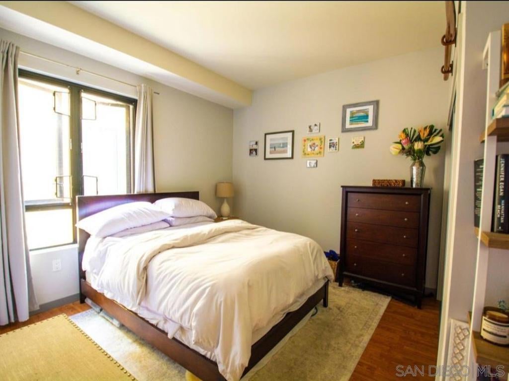 Well-maintained 2-bedroom, 2-bath corner residence located on the 5th floor of Aloft at Cortez Hill. This unit offers excellent privacy with no shared walls and no residence above. Interior features include wood flooring, an open kitchen with stainless steel appliances, and a functional layout with generous natural light. The primary bedroom includes ample closet space and direct access to the balcony. Enjoy city and neighborhood views from the large private balcony, ideal for outdoor seating. Community amenities include a pool, spa, fitness center, outdoor lounge areas with fire pit and BBQ facilities, and secure building access. Conveniently located near Balboa Park, downtown dining, shopping, and major freeway access.