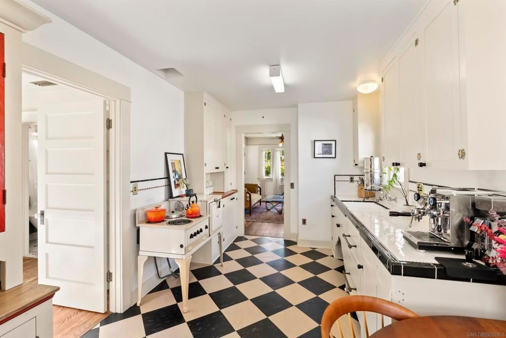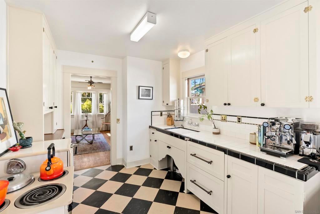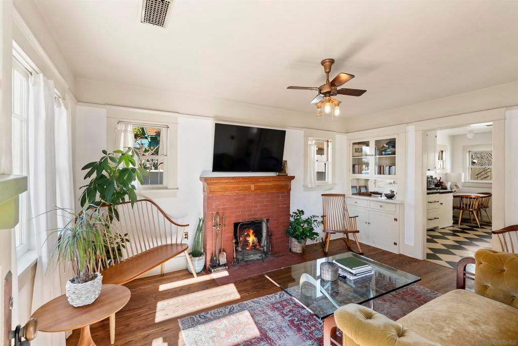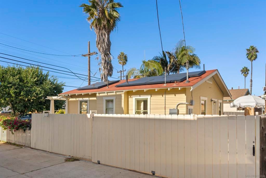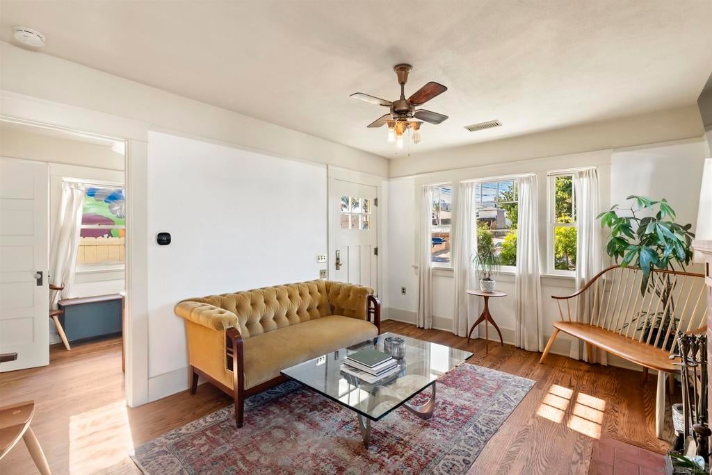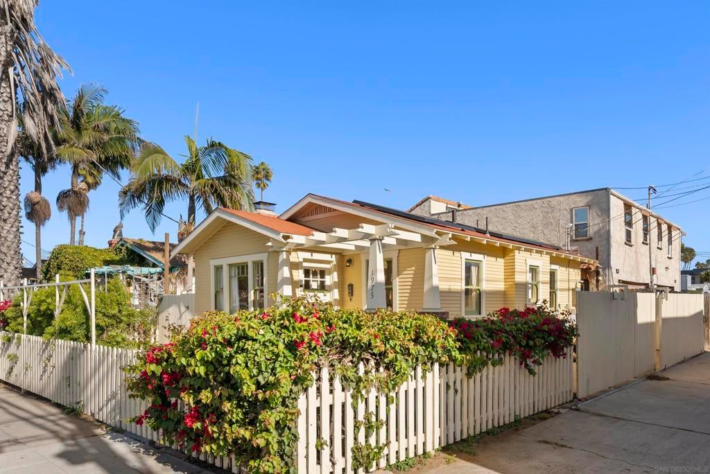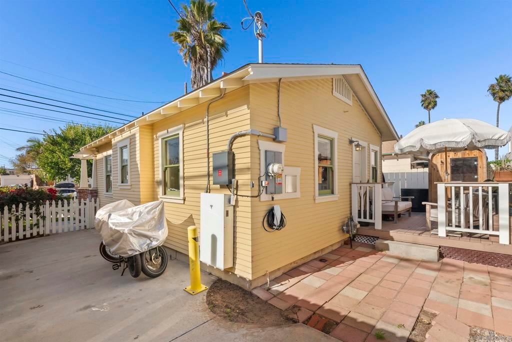 If you’ve been dreaming of a true Ocean Beach classic, this pristine original beach cottage is the one! Bursting with vintage charm and character, this 1922 gem has been lovingly restored from the studs up—combining timeless craftsmanship with thoughtful modern upgrades. Step inside to find lath and plaster walls, gleaming hardwood floors, a cozy brick fireplace, built-ins, and picture rail molding that honor its period roots. The light-filled kitchen features pristine original cabinetry, period tile countertops, charming checkerboard flooring, and a retro stove and oven. A hidden Sub-Zero drawer fridge/freezer and the original “California Cooler” seamlessly blend past and present. The bathroom shines with a restored clawfoot tub, vintage-style flooring, and a classic medicine cabinet. Every detail has been carefully preserved or upgraded, including owned solar, updated electrical panel and wiring, copper and ABS plumbing, seismic retrofitting, and A/C. The exterior retains the home’s original 1922 color, framed by a white picket fence, lush landscaping, and privacy fencing. Enjoy your morning coffee or a relaxing sauna session on the back deck, and take advantage of side-yard parking for two cars + a motorcylce—rare for this coveted location! Just one block from the beach and a short stroll to Ocean Beach’s favorite restaurants, cafes, bars, and shops. This is coastal living at its most authentic—an OB treasure where vintage charm meets modern comfort.