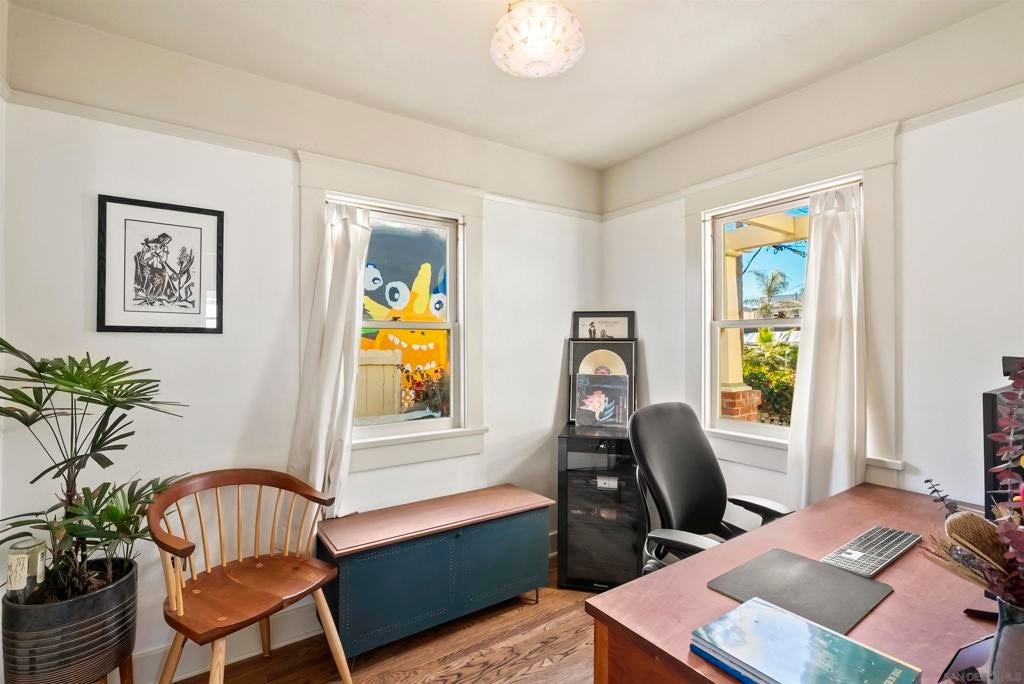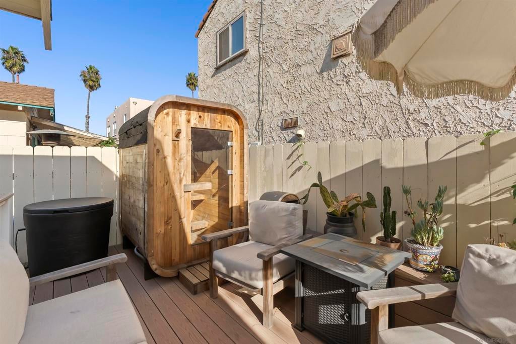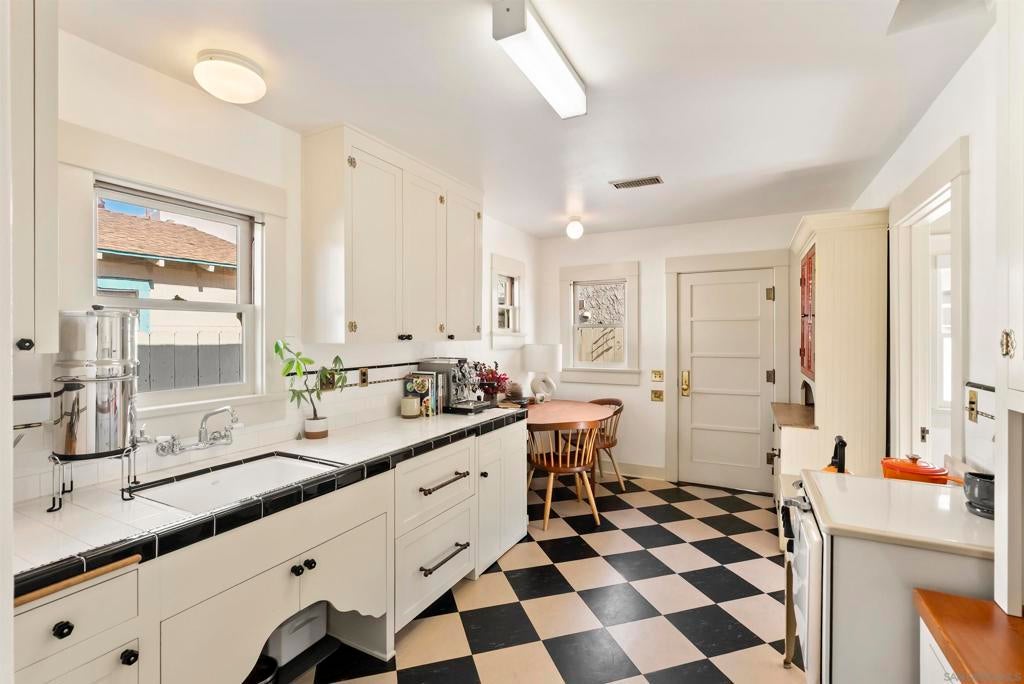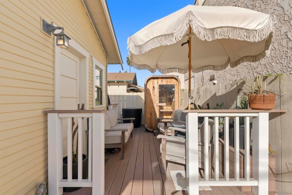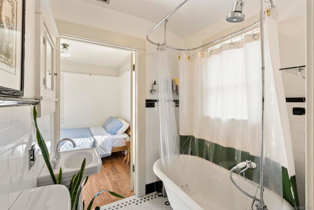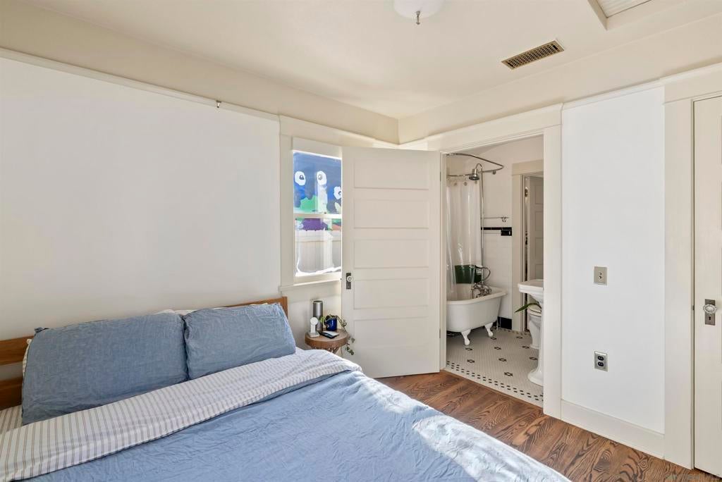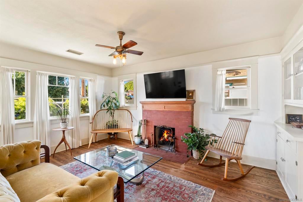 If you’ve been dreaming of a true Ocean Beach classic, this pristine original beach cottage is the one! Bursting with vintage charm and character, this 1922 gem has been lovingly restored from the studs up—combining timeless craftsmanship with thoughtful modern upgrades. Step inside to find lath and plaster walls, gleaming hardwood floors, a cozy brick fireplace, built-ins, and picture rail molding that honor its period roots. The light-filled kitchen features pristine original cabinetry, period tile countertops, charming checkerboard flooring, and a retro stove and oven. A hidden Sub-Zero drawer fridge/freezer and the original “California Cooler” seamlessly blend past and present. The bathroom shines with a restored clawfoot tub, vintage-style flooring, and a classic medicine cabinet. Every detail has been carefully preserved or upgraded, including owned solar, updated electrical panel and wiring, copper and ABS plumbing, seismic retrofitting, and A/C. The exterior retains the home’s original 1922 color, framed by a white picket fence, lush landscaping, and privacy fencing. Enjoy your morning coffee or a relaxing sauna session on the back deck, and take advantage of side-yard parking for two cars + a motorcylce—rare for this coveted location! Just one block from the beach and a short stroll to Ocean Beach’s favorite restaurants, cafes, bars, and shops. This is coastal living at its most authentic—an OB treasure where vintage charm meets modern comfort.