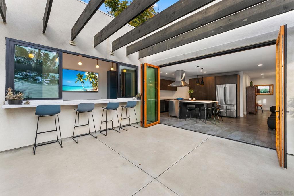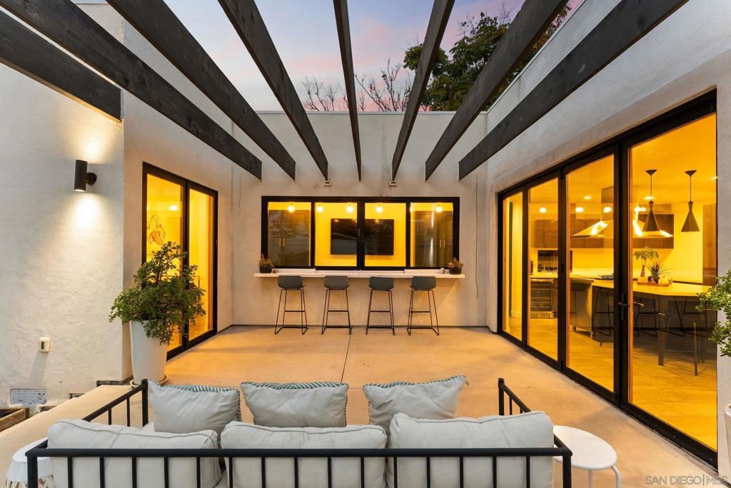 A rare blend of timeless character and elevated design, this Modern Spanish residence in the heart of Normal Heights has been thoughtfully reimagined for today’s lifestyle. Warm natural light, and sleek black-framed windows create a bright, refined feel throughout, complemented by engineered wood flooring and curated finishes. At the center of the home is a showpiece chef’s kitchen featuring Bertazzoni appliances, quartz countertops, custom modern cabinetry, and statement lighting—anchored by a generous island built for effortless entertaining. Designed for true indoor-outdoor living, expansive La Cantina doors open to a private courtyard and backyard retreat complete with an outdoor bar/pass-through window, exposed-beam pergola, café lighting, and a built-in fire pit lounge—perfect for hosting year-round in San Diego’s ideal climate. Additional upgrades include California Closets and designer fixtures by Newport Brass. All set moments from Adams Avenue’s best restaurants, coffee shops, breweries, and neighborhood favorites—this is Normal Heights living at its finest.
