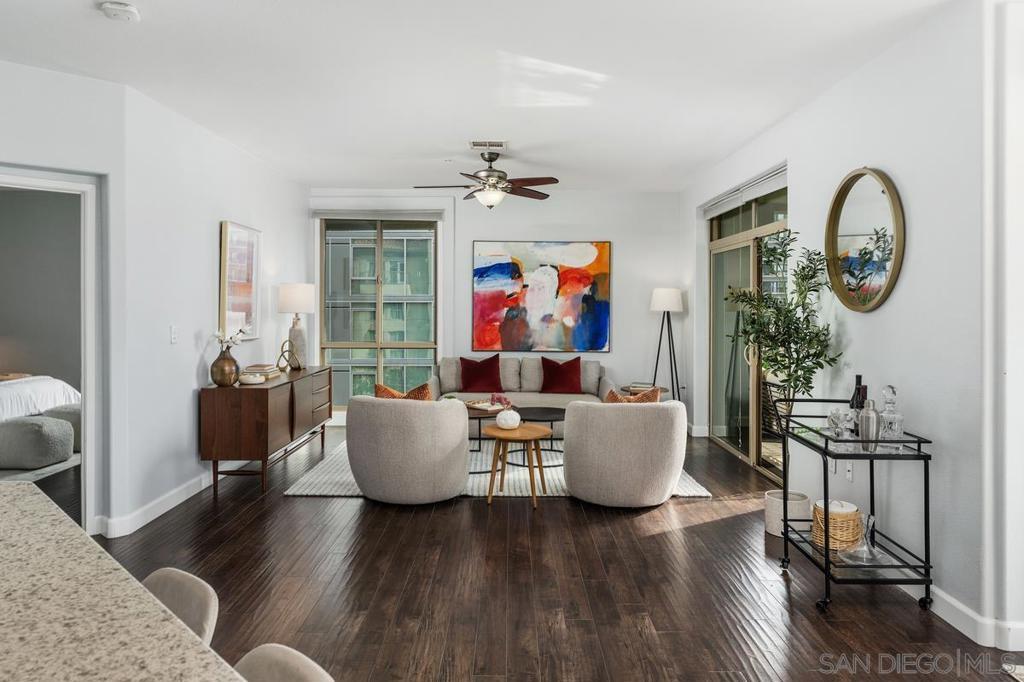Welcome to a rare gem in downtown San Diego—Little Italy, in the Palermo building! A beautifully upgraded 3-bedroom spacious end unit on the 5th floor with wrap-around city views. Inside: a gorgeous open layout, hardwood floors throughout, and a remodeled kitchen with sleek quartz countertops and crisp white cabinetry. Natural light floods through double-pane floor to ceiling vinyl windows with a private corner patio overlooking the magnificent city views. Just steps from the best restaurants and nightlife. Enjoy a short walk to Little Italy's Farmers Market and Extraordinary desserts just to name a few. This home blends space, style, unbeatable walkability. Don't forget the incredible amenities: barbecue area, clubhouse, rec center, full exercise room, pool, spa, hand two side by side underground parking spaces. This is one of little Italy's rarest and desirable properties. Not to be missed!!!!!