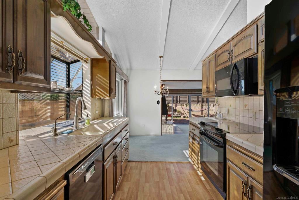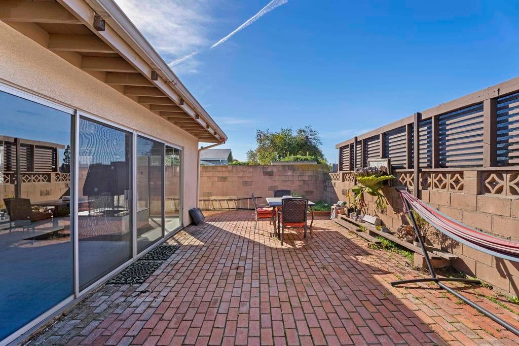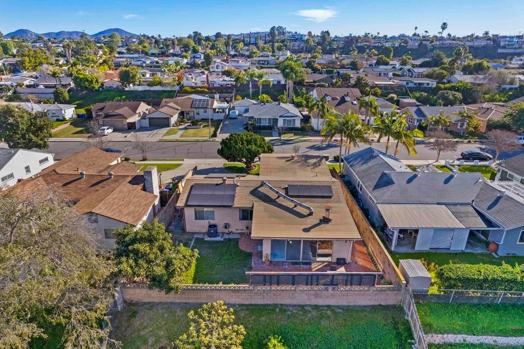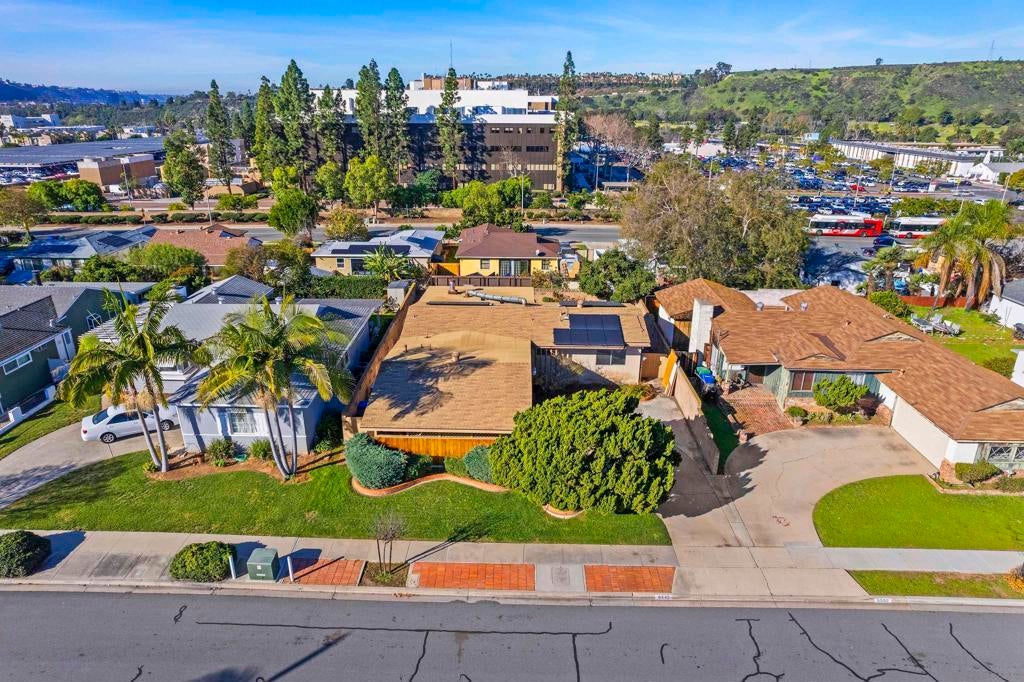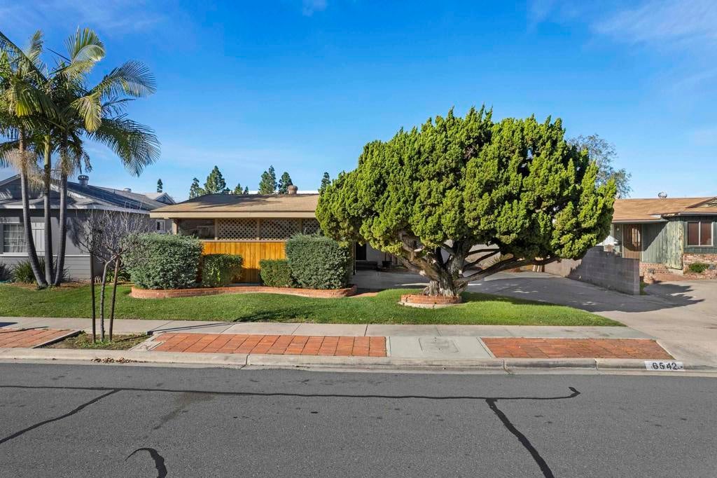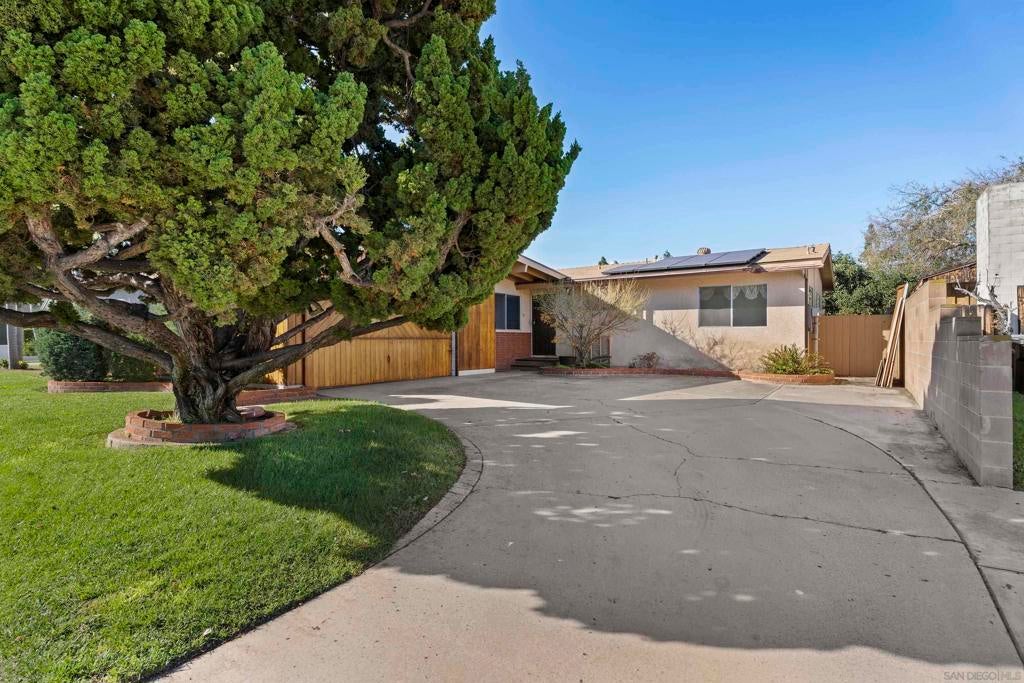 Welcome to your dream home in the heart of Allied Gardens! This charming residence is nestled on a quiet street and offers 4 bedrooms and 2 bathrooms within 1,482 square feet of well-designed living space. Step inside to find soaring high ceilings in both the living room and kitchen, creating an airy, open atmosphere. The large family room, featuring a cozy central gas fireplace, is bathed in natural light—perfect for relaxing or entertaining. The property boasts a paid-off solar system, ensuring low utility bills even with it's central A/C! With a roof that's only 8 years old, you can enjoy peace of mind knowing that those updates have been taken care of. The attached two-car garage provides convenience, while RV parking in the driveway is a notable bonus for the outdoor enthusiast. Adding to the home's attractive curb appeal is the beautiful redwood fascia on the front, enhancing its charming character. Situated within walking distance to shopping, diverse restaurants, and Kaiser Hospital, this home is not just a property—it's a lifestyle. The back yard has a cinder block wall, brick patio and a huge avocado tree. There is even a little view to the west for sunsets. With great bones and a prime location, this residence is a fantastic opportunity for anyone looking to remodel and make it their own. Don't miss the chance to turn this house into your dream home!