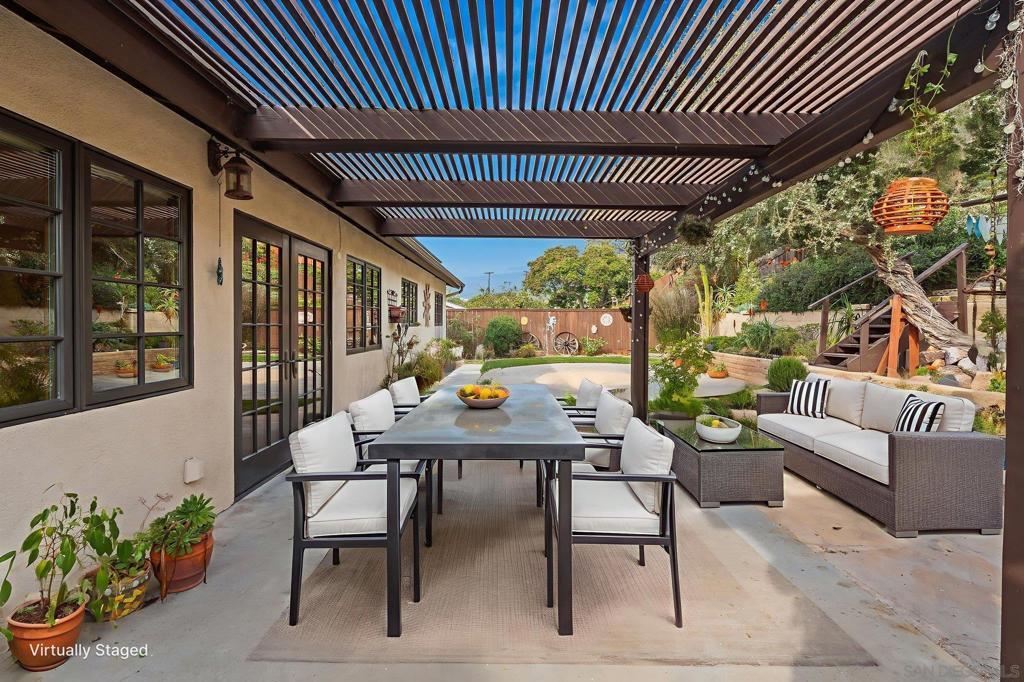 Welcome to this Cardiff coastal retreat, set on a generous lot offering exceptional upside for both move-in-ready buyers and investors seeking to make the property their own. Ideally located just over the hill from Cardiff State Beach, this beautifully maintained home blends comfort, functionality, and outdoor serenity. This property presents a rare opportunity to enjoy coastal living today with room to enhance and build for tomorrow. Upon entry, the home features an upgraded kitchen with granite countertops, newer appliances, and open archways that create seamless flow between the kitchen, dining, and living areas—perfect for everyday living and entertaining. The home offers three bedrooms and two updated full bathrooms. Unique tile-and-wood flooring throughout the main living areas adds character and warmth, while newer French windows throughout invite natural light and coastal breezes. The outdoor spaces are a true highlight. Both the front and backyards are meticulously landscaped, offering multiple areas for relaxation and entertaining. The low-maintenance, water-efficient desert scape front yard brings great curb appeal, while the backyard features a relaxing environment with a built-in waterfall fountain, a pergola, a gazebo, turf, and a retaining wall. A thoughtfully designed erosion-controlled path up the hill leads to a flat upper yard extra space with partial ocean and lagoon views of San Elijo Lagoon and Seaside State Beach.