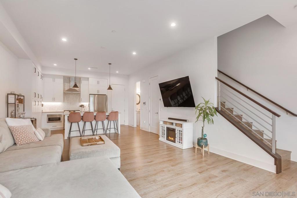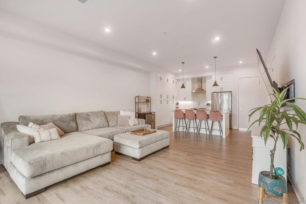 Modern 3-Bedroom Townhome with Rooftop Deck & Prime Location. Built in 2022, this light-filled and stylish 3-bedroom, 2.5-bath townhome combines modern convenience with thoughtful design. Featuring an open floor plan with soaring 12’ ceilings, LVP floors throughout, and recessed lighting throughout, this home offers a bright and airy living space perfect for both relaxing and entertaining. The gourmet kitchen boasts shaker-style cabinetry, quartz countertops, and stainless steel appliances—ideal for home chefs. A spacious private front patio provides a welcoming entry, while the spectacular rooftop deck is the crown jewel—plumbed for gas and power, ready for BBQs, entertaining, or simply taking in stunning panoramic views. Additional highlights include: central A/C and ceiling fan for year-round comfort, primary custom closet and raised panel doors, slider vanishing screen, convenient side-by-side laundry, direct-access 2-car garage with built-in storage & ceiling racks, powder room for guests, low HOA dues. Perfectly situated near major freeways, top-rated schools, downtown, restaurants, parks, the waterfront, and the world-famous San Diego Zoo, this home offers unbeatable access to everything San Diego has to offer. Don’t miss this rare opportunity to own a newer-build, move-in ready townhome in the heart of the city.