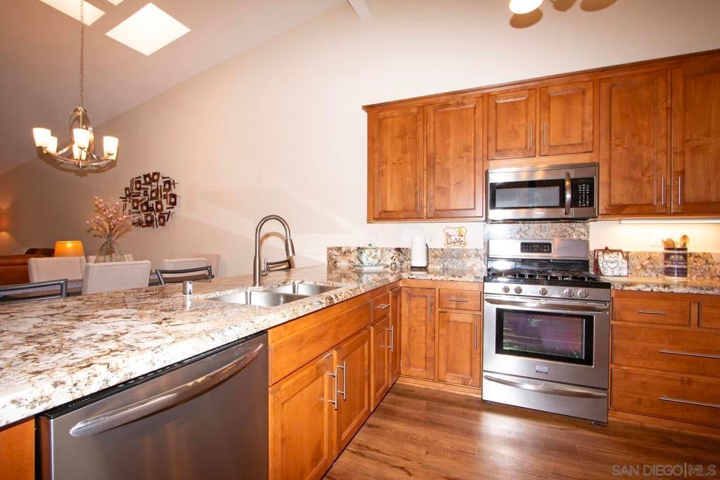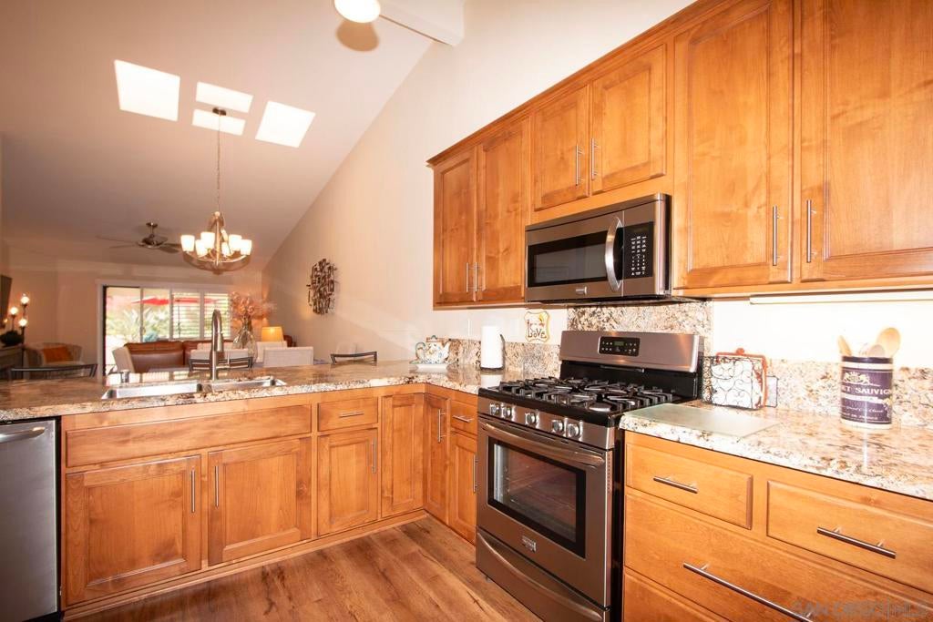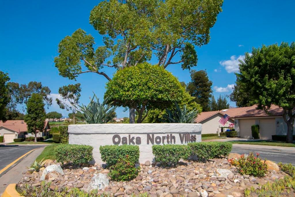 Located in popular Oaks North Villas, this 2-bedroom, 2 bath home is highly upgraded and nestled in a park-like setting. Upgrades include dual pane doors and windows, luxury wide planked vinyl flooring and plantation shutters throughout, granite countertops, Quaker style cabinets, stainless steel appliances, and gas cooking. Direct access to the garage from the laundry room with full sized washer and dryer right off the kitchen. Enjoy the large front, gated, patio perfect for entertaining or the private back patio located off the living room and primary bedroom. No stairs and no condos located above you or below you, makes this the perfect home for retirement or thinking about retirement. Oaks North is a community for people 55 years with many amenities for seniors!