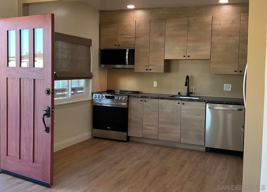 This property had a complete remodel and has been mindfully designed to protect historical vintage, as well as to provide all the contemporary amenities. All appliances are included in all unit featuring top of the line LG full size washer/dryer, French door Refrigerator/Freezer, Water Dispenser, Ice Maker, Electric Range, Microwave and Dishwasher. Unit features a large stainless steel sink, disposal, custom cabinets, and bedroom closet doors mirrored. The unit comes with high end finishes Solid wood front doors, granite countertops, luxury plank vinyl flooring throughout, custom window treatments, AC, large ceiling fans in living room, designer tub/shower, large mirrored bathroom cabinets, and so much more. Located in the heart of desirable Point Loma, this apartment offers an unbeatable coastal lifestyle just minutes from San Diego's most iconic attractions. Enjoy breathtaking ocean views, scenic walking trails, and tide pools at nearby Cabrillo National Monument and Sunset Cliffs Natural Park- perfect for evening strolls, and unforgetable sunsets. Shelter Island and San Diego Bay are close by, offering waterfront paths, marinas, sailing, and seasonal whale watching. Savor the neighborhood's celebrated dining scene with local favorites such as Bali Hai, Mitch's Seafood, Point Loma ambiance. Liberty Station is just a short drive away, featuring popular restaurants, coffee shops, boutique shopping, art venues, and weekly community events. With easy access to beaches, downtown, the airport, and major freeways, Point Loma blends relaxed coastal charm with convenience.