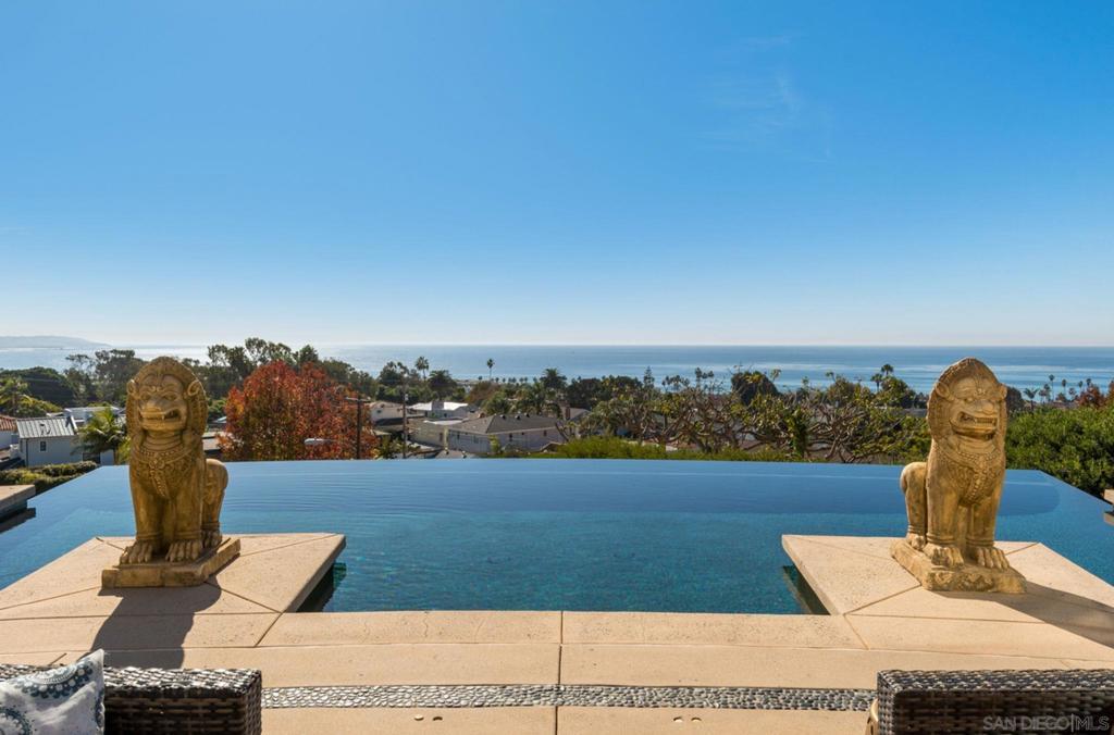 Escape to your own private fully furnished luxury beach retreat. Prime location on a half acre lot in the scenic hills of Bird Rock in La Jolla. This Modern Fusion style home defines coastal elegance, complete with spectacular panoramic ocean views, endless decks and patios, fire pit and infinity edge pool and spa, fabulously appointed kitchen, entry level en suite bedroom, plus home theater, office, gigantic garage, it's got it all! Flexible terms, available now.