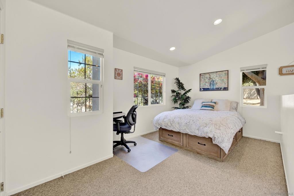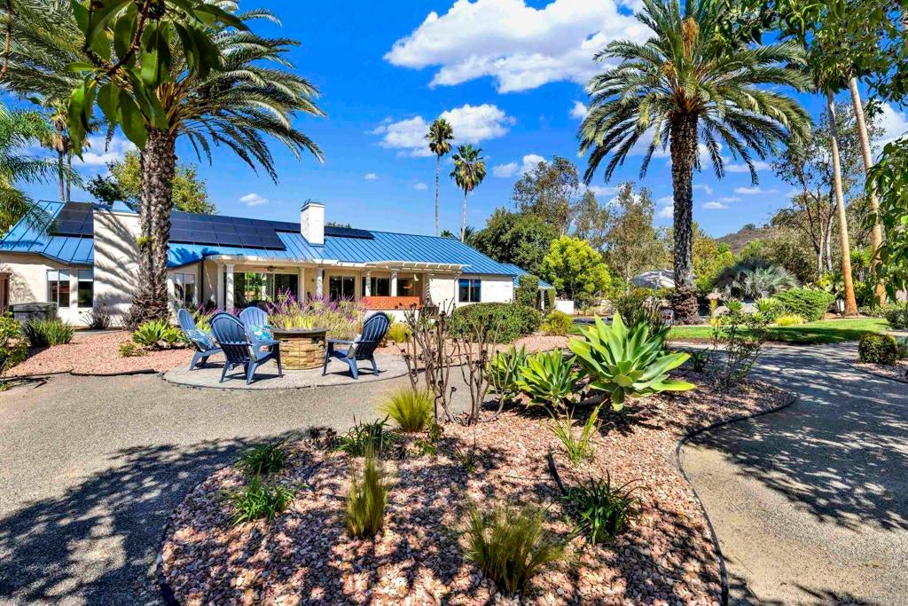 Welcome to your exquisite turn-key, single-story home in the Bridlewood Lakeside community of North Poway. Includes a rare attached 1 bed/1 bath guesthouse (approx. 560 sqft), perfect for multigenerational living or extended stays. Owned 33 panel, 13.2 kW solar system. Notable improvements include a full PEX re-pipe, a stunning metal roof with 30-year warranty (approx. 3 years new) and three new skylights, dual-zoned (two) Bosch HVAC systems (both feature electric and gas options), a 200-amp electrical panel, European Oak engineered hardwood flooring (3 mm), and a whole-house water filtration and drinking water system. Outdoor entertainment includes pool with waterfall, above-ground spa, RV parking, batting/golf cage, Alumiwood patio covering, gas firepit, and a flat usable yard with no neighbors behind. The stylish wet bar with ample storage enhances entertaining, while the custom office built-ins, reimagined closets in all bedrooms, and extensive cabinetry in the 3-car garage with insulated roll-up doors add both elegance and functionality. Additional highlights include a newer interior paint refresh, 7-camera security system, and an expansive circular driveway providing generous guest parking. The backyard is a true entertainer’s paradise. Nestled on nearly an acre, this resort-style setting boasts a sparkling pool, above-ground spa, Alumiwood patio covers with outdoor lighting and ceiling fans, a batting/golf cage, RV parking pad, and a flourishing variety of fruit trees—creating a private oasis that blends recreation with relaxation. This rare offering combines wonderful upgrades, unmatched functionality, and an enviable Poway lifestyle. Close to freeway access and tucked away in one of Poway’s most sought-out neighborhoods, this home is located in the award-winning Poway Unified School District and the best shopping in Poway, without compromising elegance or location. Homes like these don't come on the market often - come see it today before it's too late!
