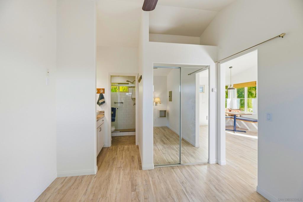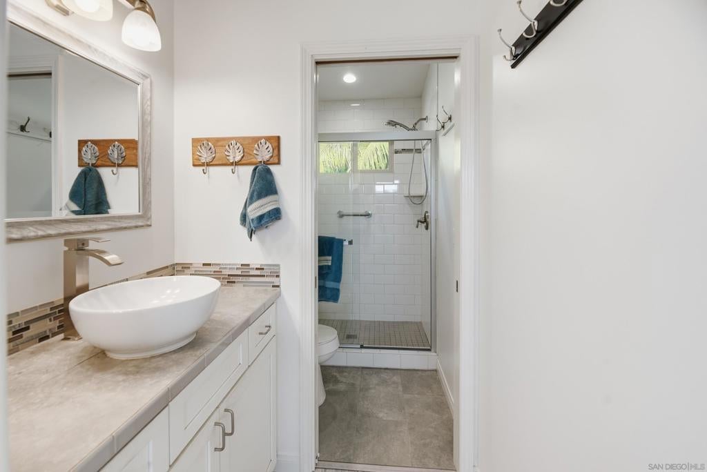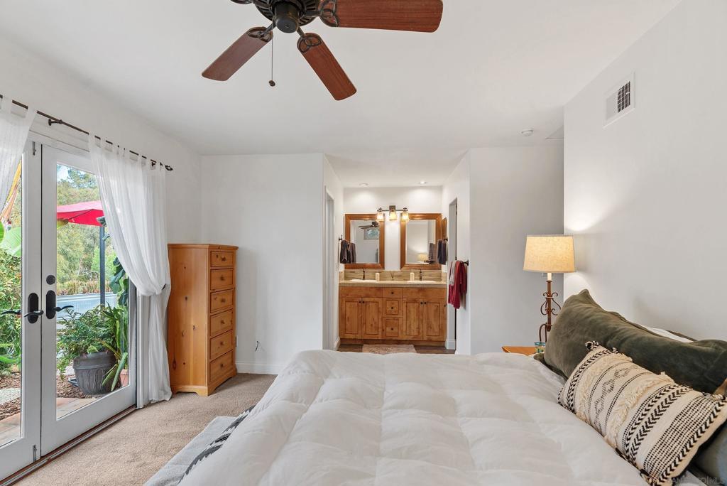 Tucked away on a desirable cul-de-sac, this lovely home offers the perfect blend of comfort, flexibility, and classic Carlsbad charm. Set on an expansive 11,400 sq ft lot with open space behind, the home enjoys peaceful views of lush greenery and mature trees, your own private retreat just minutes from the coast. Adding exceptional versatility is the attached ADU above the garage, included in the 2,172 sq ft of living space. Complete with a living area, kitchen, eating nook, bedroom, and bath, it’s ideal for extended family, guests, or a private retreat. Step onto the balcony and take in gorgeous sunset views, a daily reminder of how special this location is. The main home lives entirely on one level, featuring three bedrooms and two baths, and is thoughtfully designed for both everyday living and entertaining. The updated kitchen is a standout with alderwood cabinetry with pull-out drawers, granite countertops, stainless steel appliances, under-cabinet lighting, and travertine tile floors. It opens seamlessly to the spacious family room, where vaulted ceilings, a casual dining area, and a sliding door to the backyard invite gatherings to flow effortlessly indoors and out. The private and peaceful backyard oasis offers endless possibilities: sip your morning coffee, unwind at the end of the day, or host memorable gatherings surrounded by nature. A formal dining room opens to a tranquil grassy side patio, ideal for alfresco dinners, while the large living room offers a cozy stone fireplace and a charming barn door at the entryway. The front yard provides a welcoming sitting area, perfect for greeting neighbors or enjoying a quiet moment. The spacious primary bedroom features a walk-in closet, updated bathroom with skylight, ceiling fan, and French doors offering a lovely view and access to the backyard. Beautiful alderwood cabinets and doors are showcased throughout the home, adding warmth and a cohesive design element. All this, just minutes from the beach, Carlsbad Village, shopping, dining, schools, and freeway access. This is a home that truly offers options, warmth, and lifestyle, a rare opportunity in one of Carlsbad’s popular neighborhoods.