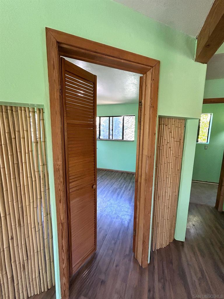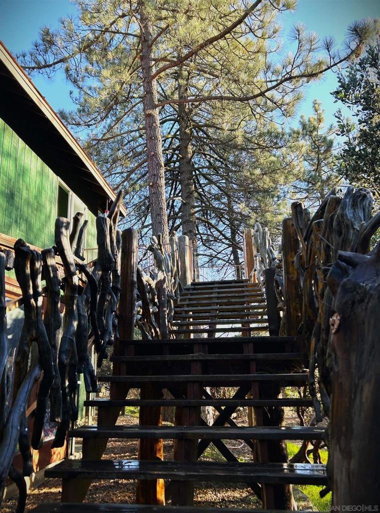 A wonderful property to call home. Set in the heart of Julian, this mountain cabin is filled with artistic touches and country charm. The two story floorplan is flexible and the home can be divided into upper and lower units if desired. The upper level living area features vaulted, exposed beamed ceilings warmed by a circular wood stove. The open kitchen is distinguished by brass and granite. Unique touches of bamboo and custom cabinetry provide warmth to this natural beauty. An expansive view deck, shaded by majestic old growth pines, sends your sights west to panoramic sunsets. Upon the land you will find rolling, tree lined paths leading to a tranquil pond and espalier. Need more? There's lots of level to expand your future home.