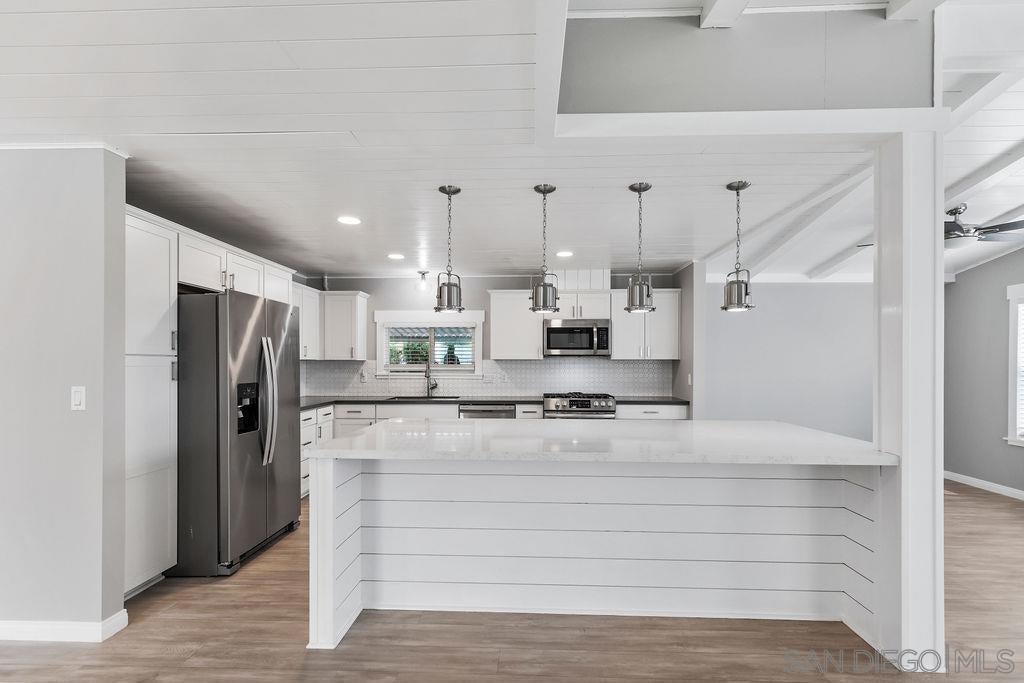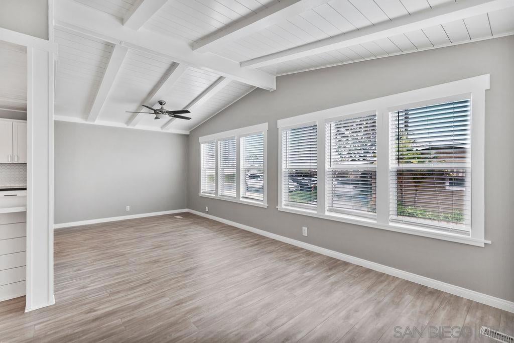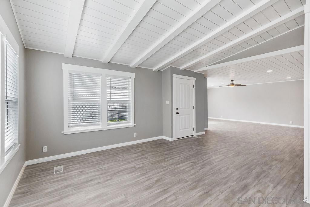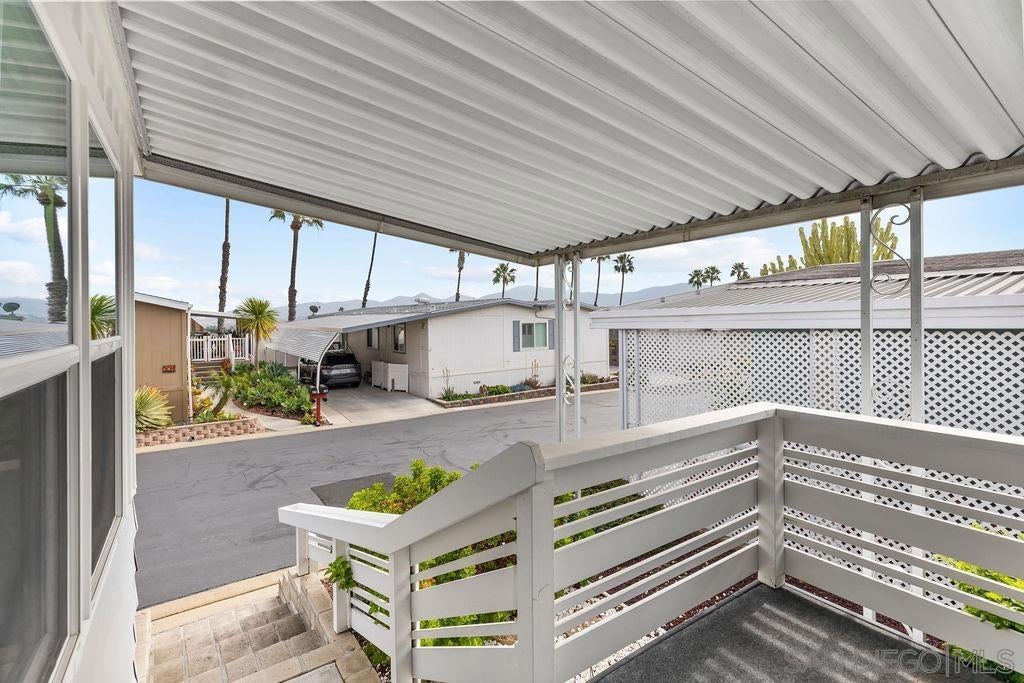 Stunning updated home with vaulted ceilings and easterly mountain views! Beautifully remodeled kitchen features a large quartz island w/ storage and stainless steel appliances. The open floorplan of the kitchen, living and dining areas allow plenty of space to entertain. Primary suite has dual sinks, soaking tub, step in shower, large linen closet, walk in closet & access into California room. Extra large utility room w/ oversized broom closet. Carport fits up to 2 vehicles and has a large secured storage. This unit is also located near guest parking spaces. Palomar West is a 5-star park with resort-style living with rent control & no property taxes on this home! This is a non-profit, 55+ park with a very active & social atmosphere - heated pool, spa, clubhouse, gym, tennis courts, pickleball and putting green.