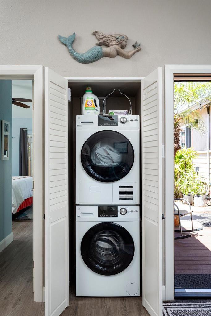 Crown Point Drive Views For Sale! First time on the market since it was built in 1960, this property features a 3bed 2bath 1326sf front house, with a 600sf rear 1bed 1bath casita guest house. Front home features include: driveway at the north of property with attached 2 car garage, washer dryer in garage, central AC & Heat, lovely open high-ceiling living space with gas fireplace, and front and rear patios. Casita features: AC & Heat via mini-split, full kitchen, stacked washer-dryer in-unit, separate driveway to south with its own side entry. Crown Point Park is just across the street with rolling green hills and lush trees. Most owners on Crown Point Drive elect to build a 2nd/3rd story to capture the BIG east and southerly views over Mission Bay toward Fiesta Island, Bay Park, and Downtown.