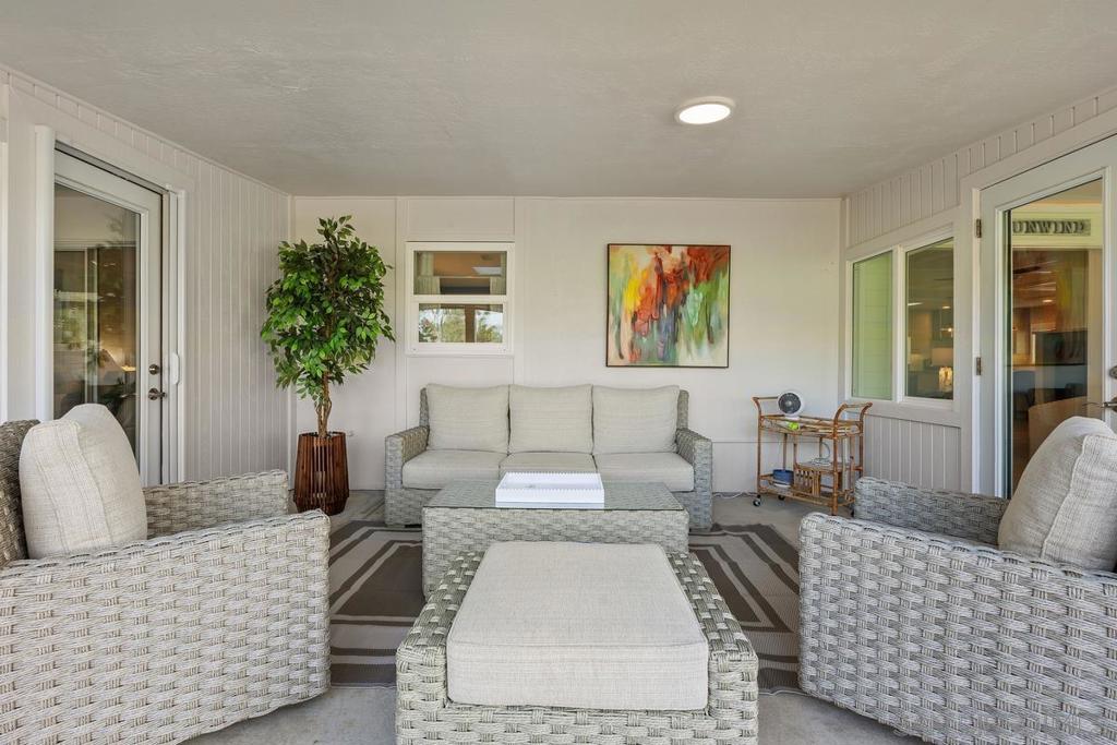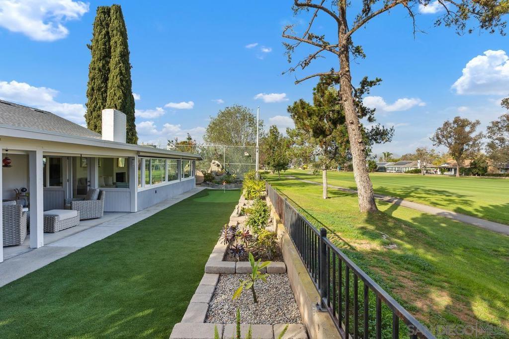 This lovely single-level home is perfectly positioned on the 12th fairway of the Links at Lake San Marcos championship golf course, offering a seamless blend of comfort, style, and resort-inspired living. Featuring three bedrooms, two baths, and a versatile optional room ideal for a home office or den, the layout is both functional and inviting. A hand-cut olive wood mantel crowns the stunning double-sided fireplace, creating a warm focal point shared by the living spaces, while a TV/bar island adds a modern, social touch—perfect for entertaining or relaxed evenings at home. The current owners have installed a Pure Water water purification system, providing filtered water throughout the home. The drinking water goes through an additional system that provides triple filtered water. This system decalcifies the water so there is no buildup and makes the water much softer. Cost of this system was about $7,000. They have made repairs/replacement to some of the main line and bathroom drain lines at a cost of more than $26,000. All recently completed plumbing work is covered by a 50 year warranty. The remodeled kitchen (2019) is a true showstopper, designed with both beauty and practicality in mind. Quartzite natural stone countertops pair effortlessly with LG and Bosch stainless steel appliances, while recessed lighting beneath the cabinets enhances both ambiance and function. A massive island anchors the space, featuring an in-island microwave drawer and an eat-in bar that invites gathering. Coffered ceilings in the living and dining rooms elevate the architectural appeal, and Solatubes throughout the home fill the spaces with soft, natural light. The primary suite is a serene retreat, complete with built-in dressers and an ensuite bath offering a walk-in shower and walk-in closet. Just beyond, a light and airy sunroom (372 sq. ft.) and a cozy sitting room (144 sq. ft.) provide additional flexible living areas; while not permitted or included in the square footage, they enhance the home’s livability and connection to the outdoors. Recent upgrades include a new roof in 2024, furnace and A/C are approximately three years old, and all new windows were installed in 2017—offering peace of mind for years to come. Custom shades on the sunroom windows provide privacy but allow occupants to enjoy the gorgeous golf course view. Outside, the back yard invites relaxation with a covered patio and private putting green, while the two-car garage plus separate golf cart garage (currently used for storage) adds convenience. Located just a short distance from Brickman’s at the Lakehouse Resort—known for its retro vibe, live music, and daily dining options—this home embodies resort-style living with no HOA fees. Optional community security is available through the nonprofit Lake San Marcos Security Patrol, funded by voluntary subscriptions. Set within one of the most livable communities in Southern California, this is an exceptional opportunity to enjoy comfort, character, and an unbeatable lifestyle. The sunroom (372 esf) and the sitting room adjacent to primary bedrom (144 esf) are not permitted and are not included in the square footage. Residents have the option to purchase a Lake San Marcos lake and lodge membership for an initiation fee and plus a monthly fee. This membership entitles members to use the tennis and pickleball courts, adult pool, family pool, billiards room as well as discounts on the boat rentals.