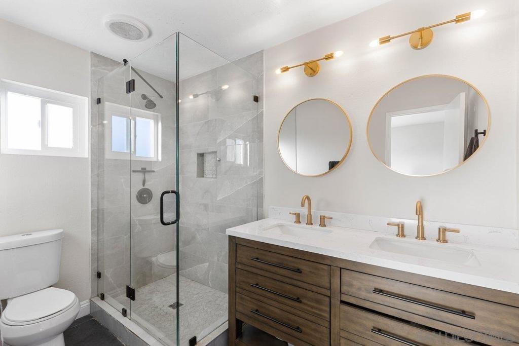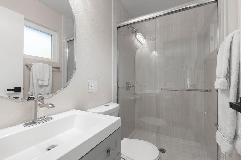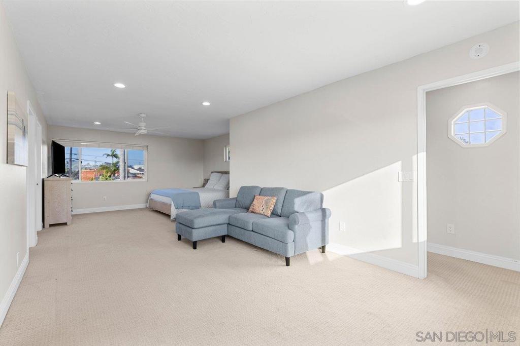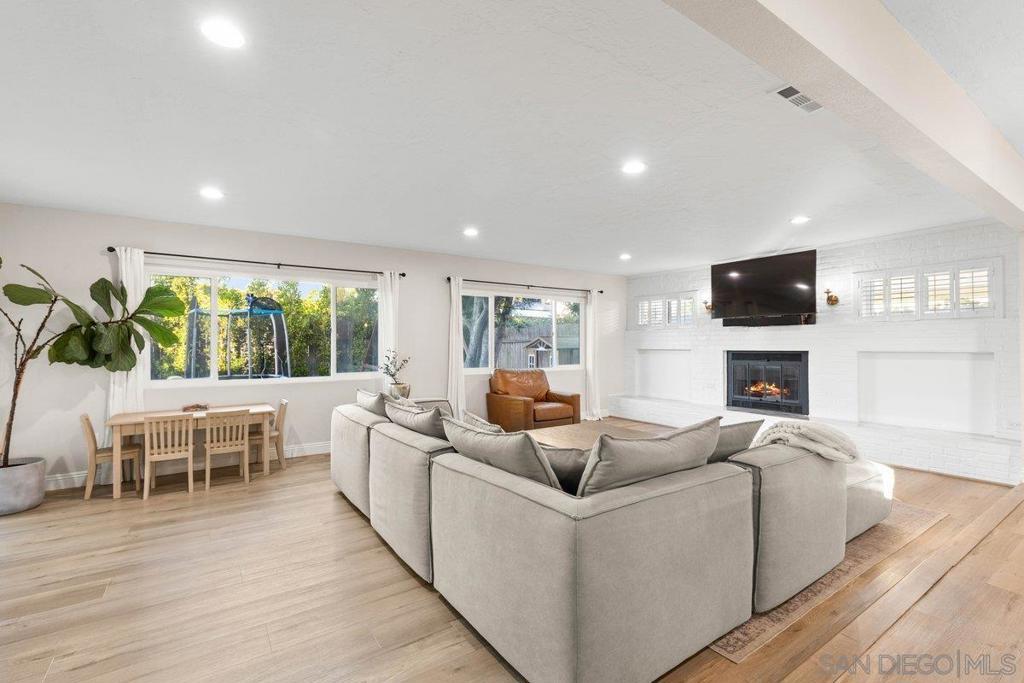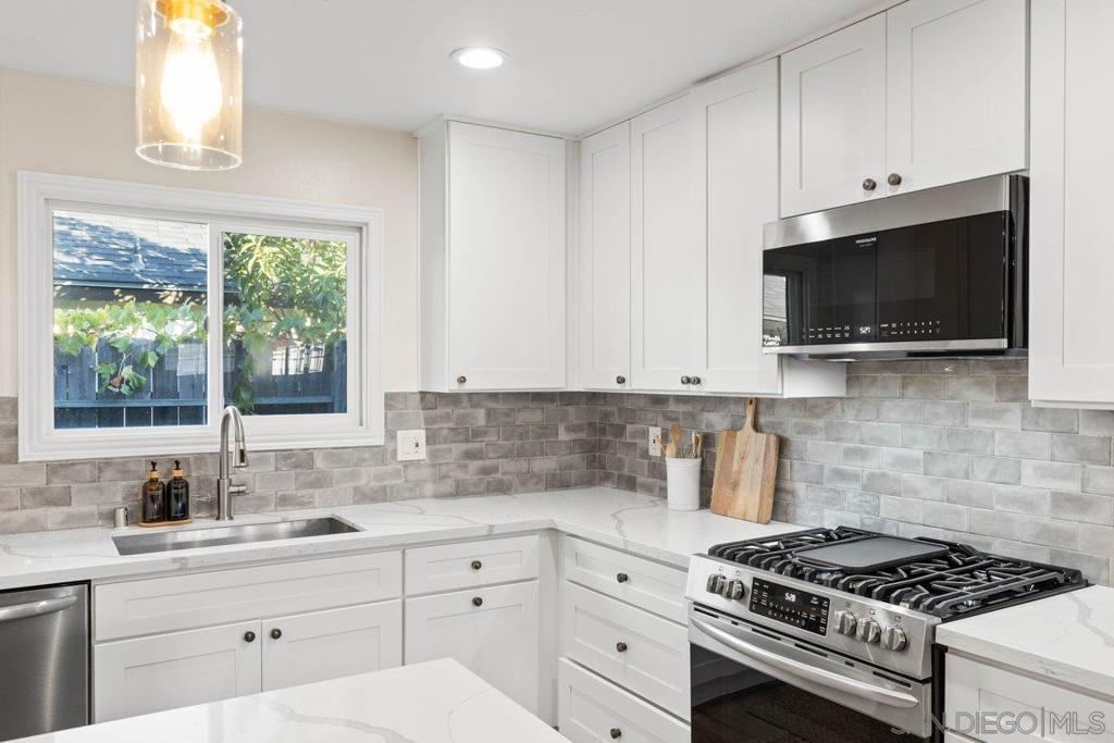 Stunning and rare home in the highly desirable Clairemont neighborhood, offering a versatile and spacious floor plan that is truly move in ready. The main level features an ensuite bedroom plus two additional bedrooms and a full bath, while the upper level showcases an expansive primary suite with dual walk in closets and a beautifully updated bathroom. The open concept design highlights a remodeled kitchen with a custom island, stainless steel appliances, gas cooking, modern lighting, and a striking tile backsplash, flowing seamlessly into the inviting living room with a cozy fireplace. All bathrooms have been tastefully updated with custom finishes. Additional features include updated windows, abundant storage, and a two car garage. The home also offers great curb appeal with low maintenance turf in both the front and backyard. The private backyard is perfect for entertaining, featuring a large covered patio and ample lighting for year round enjoyment. Ideally located near parks, schools, shopping, dining, and just minutes to the beach, this home captures the best of San Diego living. Stunning and rare home in the heart of the highly desirable Clairemont neighborhood, offering a flexible and spacious floor plan that is truly move in ready. The main level features an ensuite bedroom plus two additional bedrooms and a full bath, while the upper level boasts a massive primary suite with two walk in closets and a beautifully designed primary bathroom. The open concept layout showcases a gorgeous kitchen with a custom island, stainless steel appliances, gas cooking, modern lighting, and a striking tile backsplash, opening to a spacious living room with a cozy fireplace. All three bathrooms have been fully updated with custom finishes. Additional highlights include updated windows, excellent closet and storage space, a two car garage, and great curb appeal with easy care turf in both the front and backyard. The very private backyard is ideal for entertaining with a large covered patio and ample outdoor lighting for year round enjoyment. Conveniently located just minutes from parks, schools, restaurants, shopping, and beaches, this home offers the very best of San Diego living in a wonderful neighborhood.