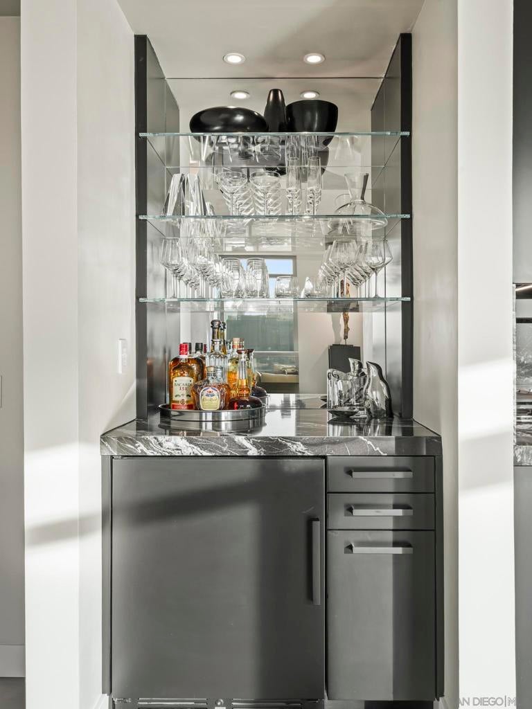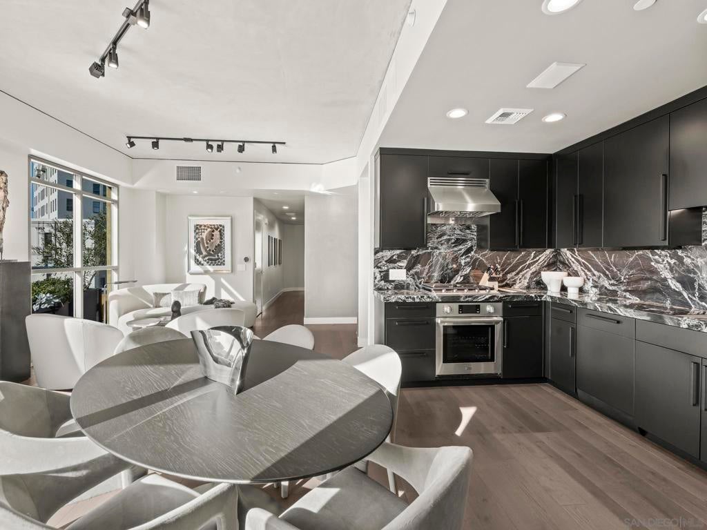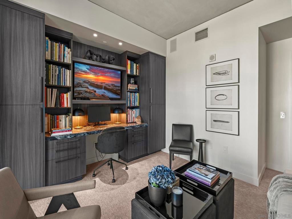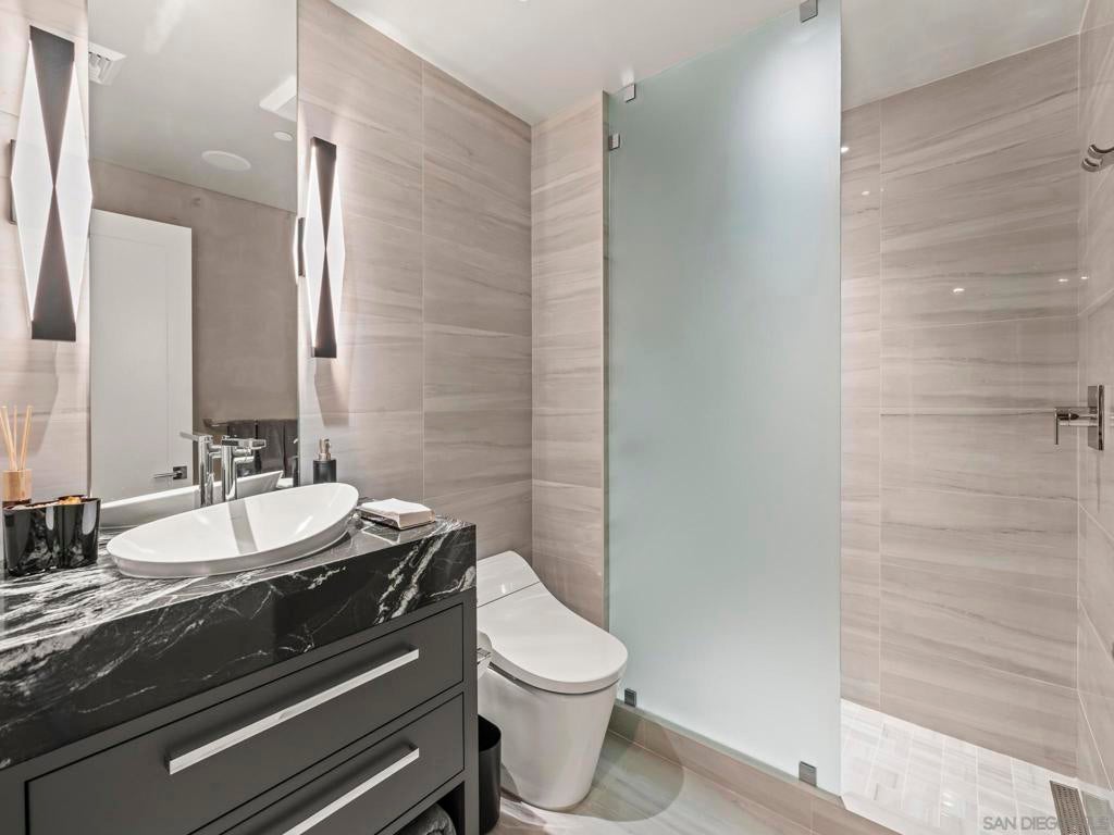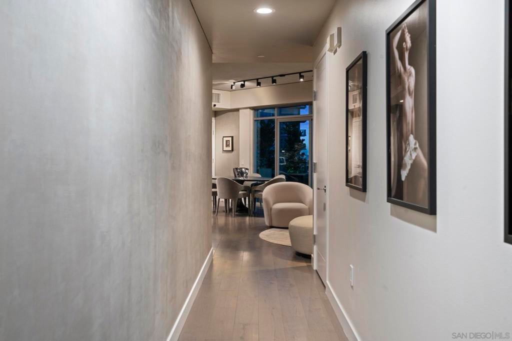 Imagine waking up in the heart of vibrant downtown, where every day is a new story waiting to unfold. This luxury residence at the Cortez Blu, an exclusive boutique building, isn't just a condo; it's a launchpad for an unparalleled urban lifestyle, perfectly situated just steps from Symphony Plaza, Balboa Park, Little Italy, and the Gaslamp. Step inside your eighth-floor sanctuary, a space totally redefined in 2024 to blend modern luxury with architectural distinction. The design choices are intentional and inspiring, featuring striking exposed concrete walls adding texture and an industrial-chic edge to high-quality finishes. You'll find bespoke elements everywhere, from custom cabinetry with granite tops and high-end appliances to sophisticated designer lighting and hidden tech shades. The commitment to unique architecture extends to the bathrooms, which feature fixtures by legendary Frank Lloyd Wright. The primary suite is a true retreat, offering picturesque city views through floor-to-ceiling windows and access to a private balcony. The en-suite bathroom indulges with a dual custom vanity, soaking tub, wet room, and walk-in closet. But the real showstopper is the over 750 sq. ft. private view terrace—a rare, almost impossible-to-duplicate outdoor space that seamlessly transforms your living experience. It's your personal stage for entertaining guests or simply soaking in continual, breathtaking city vistas. This turnkey furnished property, with secure parking and storage, offers a lifestyle that is both sophisticated and thrilling in the pulsating center of the city. One must experience this residence to understand the feel and tranquility it brings. Enjoy the privacy of only 2 neighbors on your floor with only a small, shared wall. Perched atop the serene Cortez Hill, Cortez Blu offers the idyllic location in Downtown San Diego, coupling urban convenience with neighborhood charm. This location affords quick access to freeways, putting the entire city in easy reach, but near all the verve and excitement of the cultural and brimming nightlife, sporting events, and social happenings of the downtown area.