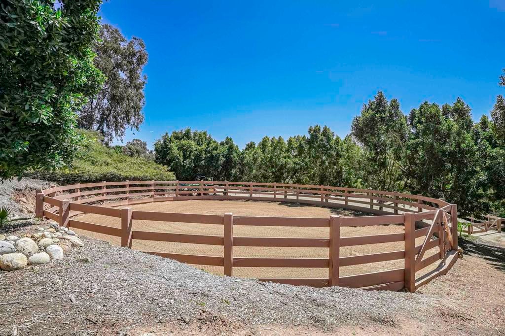 Rent This opulent estate, equestrian facility or the entire property! This location provides a secluded haven just moments away from conveniences and coastal attractions including the Del Mar Race Track, beaches and more! Easy direct access to over 58 miles of the RSF Trail system. Grand master suite boasts high-volume ceilings, private balcony, 2 fireplaces, and a spa-like bathroom. Fully remodeled kitchen features designer stone gas range & induction cooktop, & custom cabinets. Natural light floods the spacious rooms, showcasing serene pastoral views. Entertain in the elegant dining room or relax in the great room. Outside, indulge in the pool, Aquaponics system, tennis court and top-tier equestrian amenities: jumping arena, stone oversized barn w/caretaker quarters, direct trail access and multiple pastures and paddocks. Experience the ultimate lifestyle in Rancho Santa Fe This private family compound estate, on a sought-after street, offers all the advantages of a West Rancho Santa Fe Covenant location, with proximity to dining, shopping, entertainment, and beaches, & top-rated schools. Enjoy exclusive privileges of the RSF Golf/Tennis Club, private horseback riding/hiking trails., and full-time private roaming security patrol, This secluded estate sits on the trail system, exudes timeless elegance, featuring with 5 en-suite bedrooms including a fabulous master suite, plus an attached guest casita with 2BR 1 BA, FR, and kitchenette at the main level. At the end of the lower drive, you will fine world class equestrian, sports and entertaining facilities. (See documents for details) You will love the temperature-controlled wine cellar, multiple fireplaces, private balconies, and inviting pool. The beautifully appointed interior boasts graceful wrought iron doors, abundant natural light, and a casually elegant atmosphere. Kitchen includes Wolf state of the art appliances, Quartzite countertops, SubZero refrigerator & beverage fridge, Asko dishwashers. Welcome to your ultimate RSF retreat!