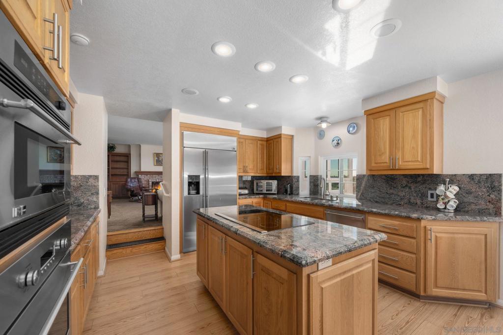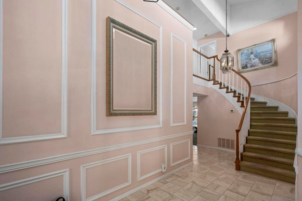 Experience panoramic lagoon and ocean views from all three levels of this spacious Carlsbad residence at 7340 Bolero St. Offering over 3,100 sq. ft. of living space on more than a half-acre of lush land, this 4-bedroom, 3-bath home blends coastal charm with timeless comfort. No HOA! Enjoy the light-filled floor plan featuring high ceilings, two fireplaces, and two inviting sunrooms ideal for relaxing or entertaining. The gourmet kitchen includes a Sub-Zero refrigerator and GE Monogram double ovens, perfect for any home chef. French doors open to a stone patio and beautifully landscaped front yard, while the wrap-around driveway leads to a three-car garage with an oversized storage room. Outdoors, mature fruit and avocado trees bring color and flavor to the property, with ample space to add a pool, garden, or potential ADU. A 75" TV and built-in media center create the ideal setting for movie nights. No Priced to sell—don’t miss this rare opportunity to own an ocean view home in one of Carlsbad’s most desirable neighborhoods