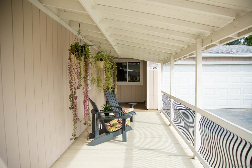 A white picket fence and covered front porch are the very essence of "home" that will captivate your first glance at 13209 Neddick Avenue. Nestled in the cozy eastern edge of Poway, the "City-in-the-Country, you'll enjoy the mature trees that dot the neighborhood and muffled sounds of nature that make this one of North County's most cherished and affordable destinations. (See Supplement) More pics soon! Step on up to the covered porch, home to 2 adirondack chairs & cascading hanging plants making this a delightful place to take in the charm of the neighborhood. As you enter, note the beautiful wood floors that lead throughout the home. The formal dining area is large enough for an expansive table and hutch - perfect for large gatherings. The open kitchen features a large center island with ample seating, a plethora of cabinet storage, and counter space that would bring a smile to the most finicky of sous chefs. The adjacent family room enjoys beautiful views to the back yard, boasts plantation shutters, a cozy fireplace and convenient slider to the covered patio area. The bedrooms and bathrooms are all located in the living space opposite the entertainment areas offering enhanced privacy. The Primary bedroom is complimented by a large walk-in closet and remodeled bathroom with stall shower. Both guest bathrooms are of ample size and are located just opposite the remodeled full bathroom with a tub/shower combination. The back yard area is quite private. The covered patio provides ample shade while leaving plenty of room to enjoy the morning and afternoon sunshine. The artificial turf and multiple rocked planter areas are perfect for the waterwise homeowner. 13209 Neddick is truly a destination for your next visit. Once you have the key, you'll want to keep it for your own!