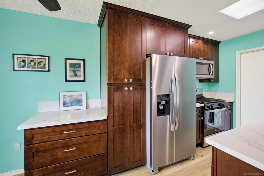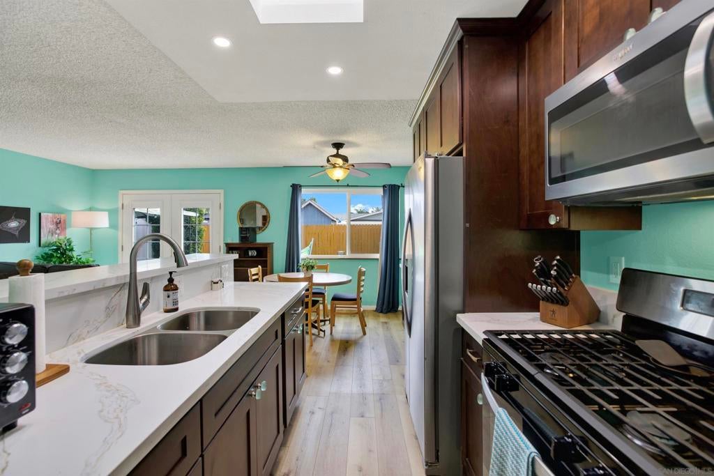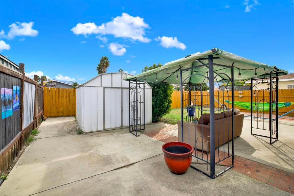 Charming attached Oceanside cottage just 5 blocks from Libby Lake Park! This 2 bed, 1 bath home offers smart living space on a 4,000 sq ft lot. The beautifully renovated kitchen features modern cabinetry, quartz-style counters, stainless steel appliances, and recessed lighting with a skylight overhead. Laminate flooring flows throughout the open-concept layout. The updated bathroom features a walk-in shower with decorative tile inlay and skylight. Energy-conscious buyers will appreciate the whole house fan and newer dual-pane windows and slider. Step outside to a spacious backyard complete with a gazebo, shed, and gated RV parking area. The attached 1-car garage includes built-ins and drop-down attic stairs for bonus storage. No HOA and recent upgrades mean this move-in-ready gem is perfect as-is, yet also ready for your personal touches. Whether you're a first-time buyer or looking to downsize, this home delivers comfort, value, and location. Don’t miss it!