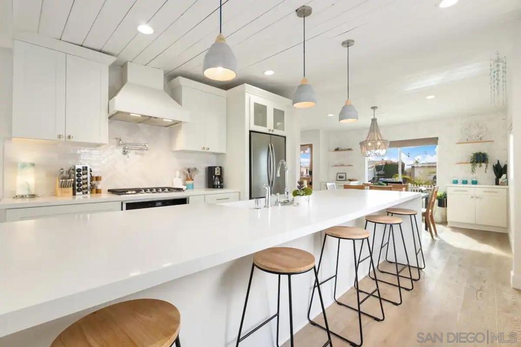Just a mile to Oceanside Harbor and beach! One of the most sought after neighborhoods in Oceanside. This stunning 3bed 2 bath home has been taken down to the studs and reimagined. Every inch of the home has been redone including all new electrical and plumbing. Designer touches throughout with attention to detail. Open concept kitchen with quartz counters and beautiful waterfall island with tons of storage. Large pull out drawers, pot filler, spice cabinet, custom range hood, with all new appliances is a must see. Off the expansive family room you’ll experience panoramic doors leading to the 300sq/ft California room with vaulted ceilings. The ultimate place to entertain! Primary bedroom has a huge custom bathroom, walk in closet and fireplace with another set of stunning panoramic doors leading to the backyard. Exterior of the home boasts new Vinyl windows, putting green, and paid off solar. This home has everything you’re looking for and more.