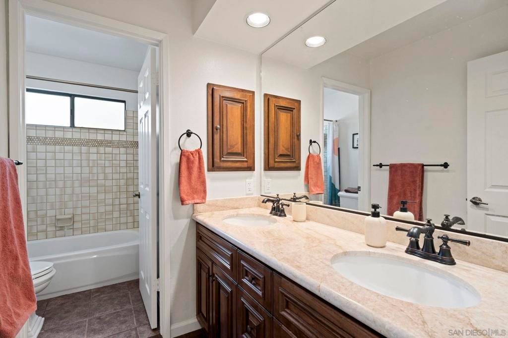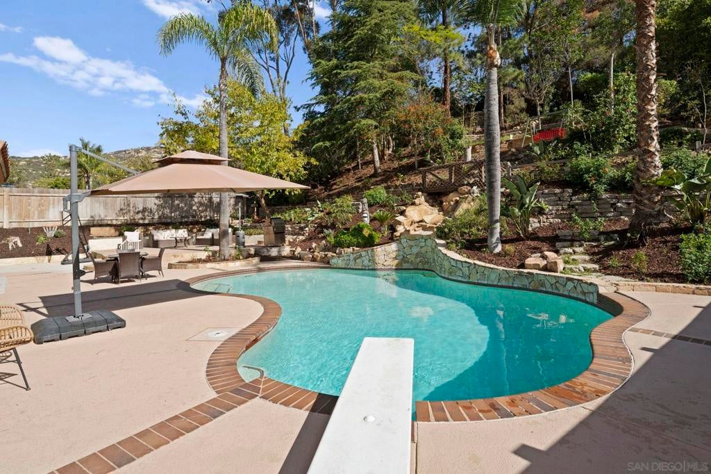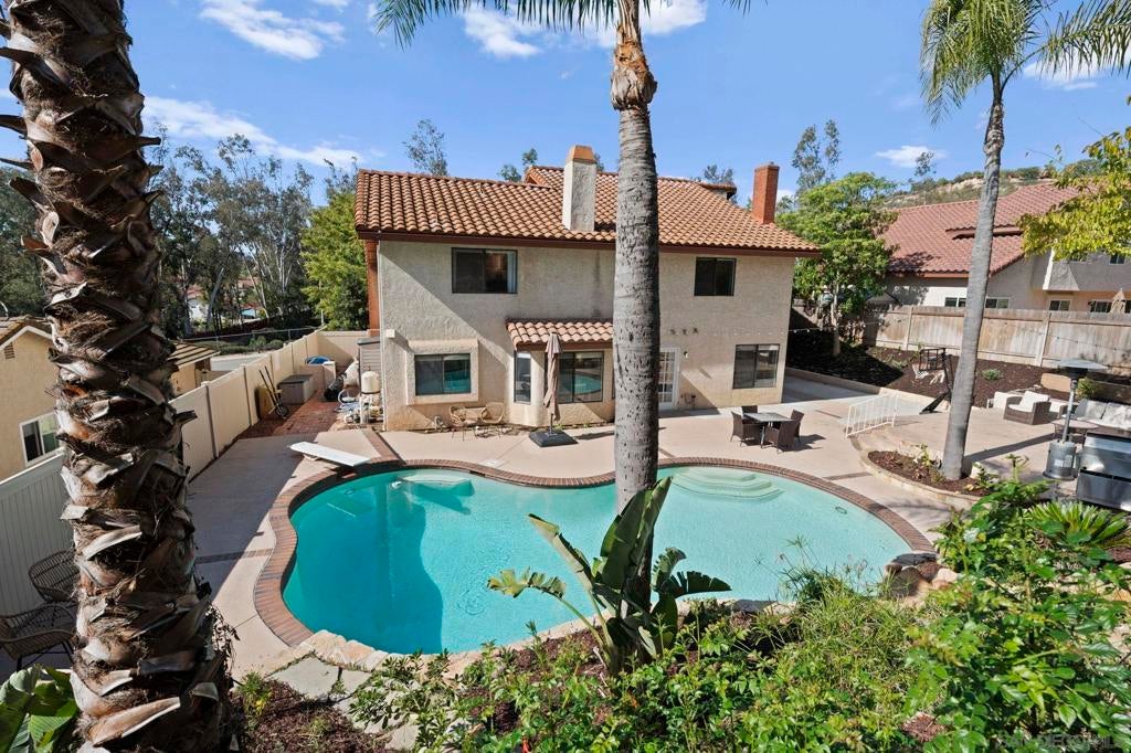Desirable Rancho Arbolitos home. Bedroom & full bathroom on first floor. Flexible floorplan. Bonus room has closet so is 5 bedroom or closet has a window and is large enough to be a separate office/craft room. Vaulted ceilings, 3 fireplaces. Backyard ideal for entertaining with pool & unique hillside garden path providing peaceful spots to enjoy sunset and mountain views. Located directly across from Silverset Park, this home offers abundant interior space with privacy and natural beauty outdoors. Located in the highly desirable Rancho Arbolitos neighborhood, this warm and welcoming home offers the space, flexibility, and outdoor lifestyle today’s families are looking for. There is a bedroom and full bathroom on the first floor, ideal for guests, multigenerational living, or a home office. The bedrooms are generously sized and vaulted ceilings create an open, airy feel, while three fireplaces offer cozy gathering spots for family time, movie nights, or quiet evenings at home. With multiple living areas, there’s plenty of room for everyone to spread out while still feeling connected—perfect for busy households that value both togetherness and privacy. Step outside to a backyard designed for making lasting memories. Whether it’s pool days, weekend barbecues, or casual get-togethers, this outdoor space is built for entertaining and everyday fun. Beyond the pool, a unique, garden path winds up the hillside, inviting exploration and imagination. Along the way, you’ll discover peaceful spots to relax, unwind, and take in beautiful sunset and mountain views—an ideal retreat after a long day. Adding to the home’s exceptional appeal, it’s located directly across the street from Silverset Park, offering easy access to green space, play areas, and outdoor activities just steps from your front door. With ample interior living space, privacy, natural beauty outdoors, and a prime location, this home is a rare opportunity to enjoy comfort, and a true sense of home in Poway’s Rancho Arbolitos.