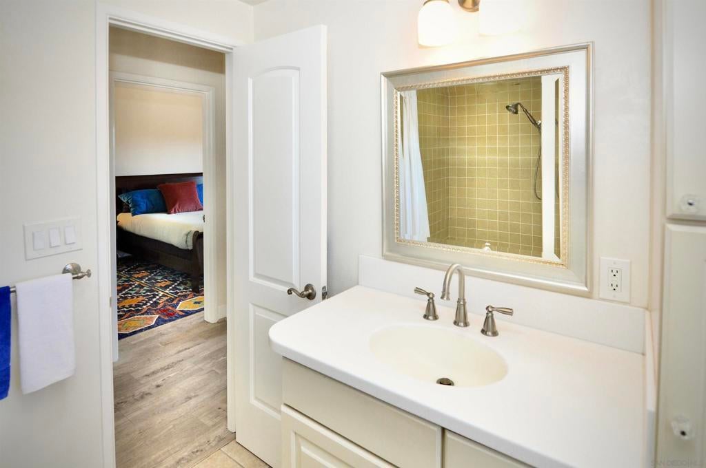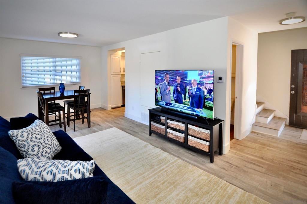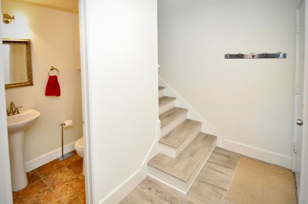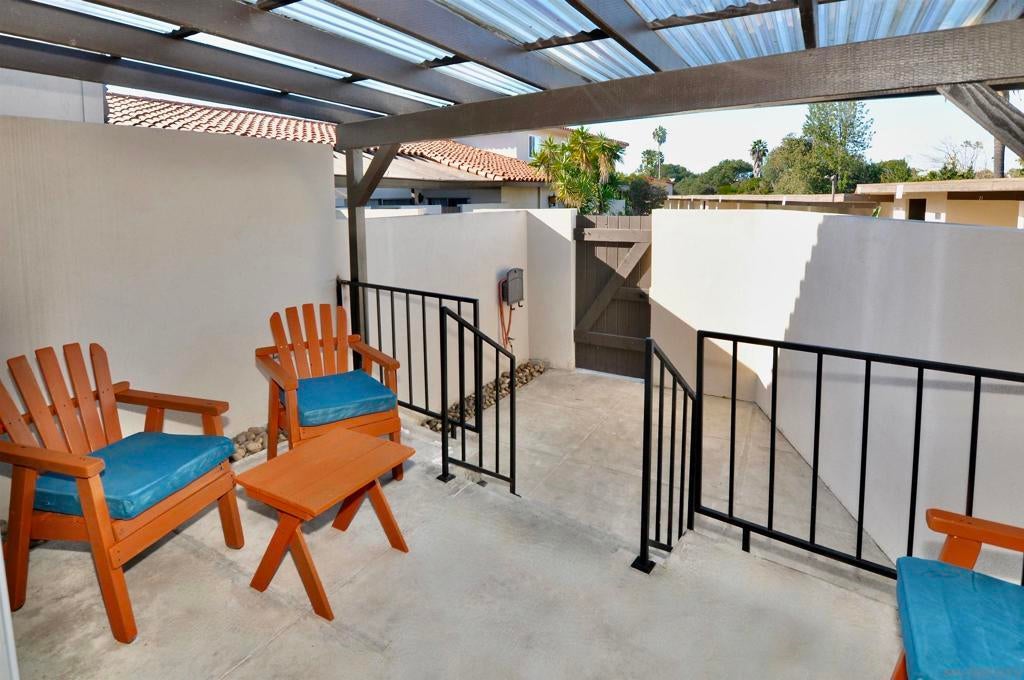 Beautiful, updated condo within steps of RB Swim and Tennis Club and all that Rancho Bernardo has to offer - Dining, Shopping, Library, Churches, and plenty of activities. This condo features gorgeous neutral, new flooring, a fresh, white kitchen with stone counters, stainless appliances and plenty of storage. The open concept living/dining area, has an added bonus of a lovely, private, outdoor, fenced in, garden space perfect for indoor, outdoor entertaining. Half bath downstairs. Upstairs are two comfortable bedrooms and a full bath, filled with natural light. There is one assigned carport with a storage area, plus easy street parking for guests. Laundry and Mailbox 13 covered steps from unit! HOA includes Wifi, Spectrum TV, DVR, Modem and premium channels (apps), Water, Trash, roof, and limited insurance. Additionally, annual fee that pays for premium membership to the Rancho Bernardo Swim & Tennis Club located just across the street. The club features a gym, pickleball and tennis courts, basketball courts, playground, karate and fitness classes, pools, and even a woodshop for hobbyists. Conveniently located near freeway access, this is your chance to enjoy North County living with resort-style amenities just steps from your front door. Come take a look. This one checks all the boxes!