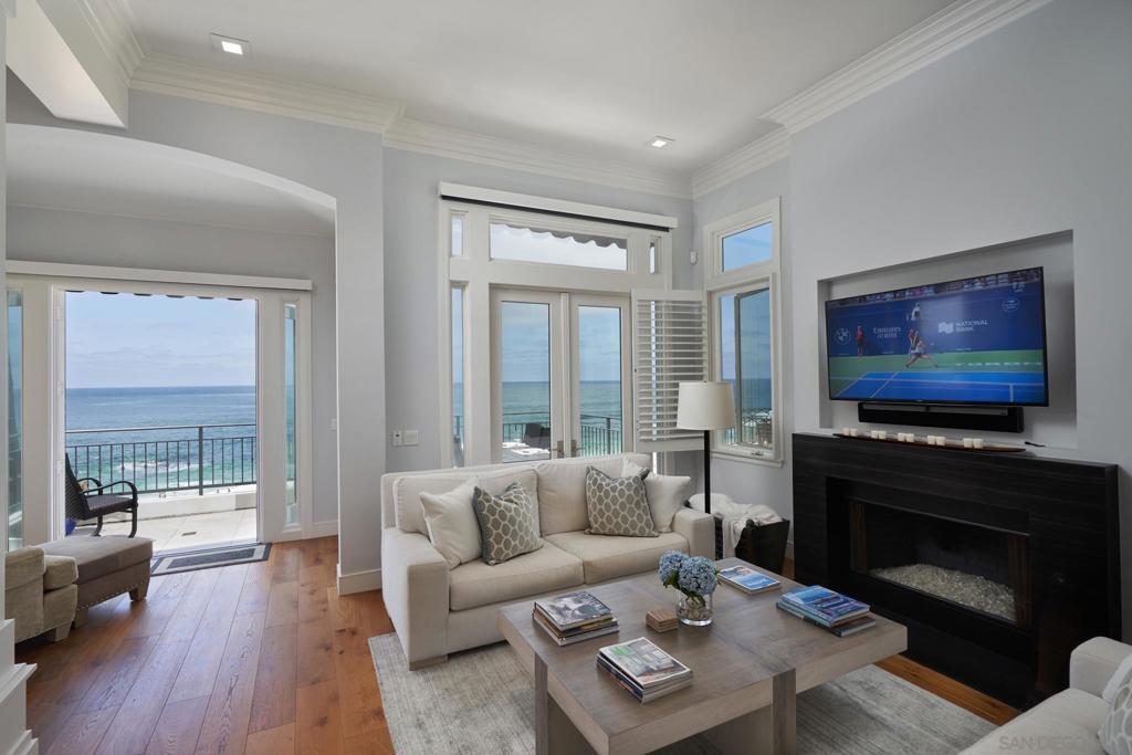 Impeccably maintained and thoughtfully updated, this well appointed coastal residence is located directly across from the sand at iconic Wind'N Sea Beach, one of La Jolla’s most sought after stretches of coastline. The home features soaring high ceilings on both the main living level and the upper level, creating a light filled and open atmosphere throughout. Recent improvements include newly installed exterior doors, new balconies, and beautifully updated interior courtyard tile The floor plan offers seamless indoor outdoor flow with multiple outdoor spaces, ideal for both everyday living and entertaining just steps from the beach. Situated in one of the most sought after neighborhoods, this property presents a rare opportunity to own a turnkey home in a premier beachfront setting.
