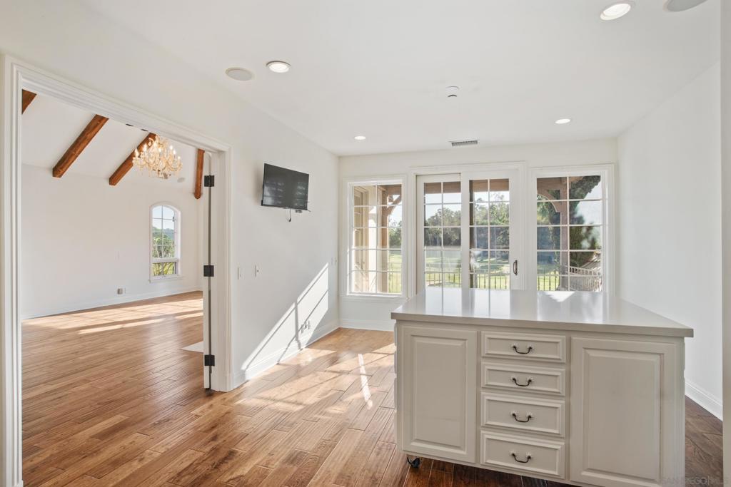 Nestled along the rolling fairways, this extraordinary residence combines timeless architecture with refined updates and sweeping golf course views. Behind its captivating, storybook façade lies a home of warmth, sophistication, and enduring quality. The chef’s kitchen is as functional as it is beautiful, showcasing handmade pewter hardware on every knob and handle. Walk-in pantry with custom cabinetry and separate butler’s pantry. The kitchen flows seamlessly into the welcoming family room and dining area, where walls of glass frame uninterrupted views of the course and greenery. Rich wood and stone flooring, vaulted wood beamed ceilings and French doors. The expansive layout offers four ensuite bedrooms, a distinguished library, and a versatile office or sitting room. Thoughtful upgrades such as a whole-home water softening system, abundant attic storage, and an epoxy-finished three-car garage further underscore the home’s craftsmanship and attention to detail. Life in Rancho Santa Fe is defined by prestige and privacy, where winding, tree-lined streets, equestrian trails, and world-class golf and tennis facilities create an unmatched sense of community. From the beloved Farmers Market and acclaimed local schools to Cars & Coffee in the Village and a charming array of dining options, the lifestyle offerings are as vibrant as they are refined—all just minutes from Del Mar’s pristine beaches and the excitement of the Del Mar Fairgrounds. Perfectly positioned between Green 5 and Tee 6, the home captures uninterrupted views and the essence of golf course living.