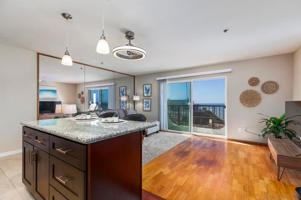BOMK (no fault of the property) Welcome to Oceanfront Living! Wake up to the sound of waves and enjoy stunning panoramic ocean views from this beautifully maintained 2-bedroom, 2-bathroom condo, approximately 1,033 est. square feet, perfectly situated along the waterfront in Ocean Beach, San Diego. The private balcony offers the ideal spot for your morning coffee or to unwind with a spectacular sunset in the evening. Inside, the open-concept layout seamlessly connects the living room and kitchen, creating a perfect space for entertaining. You'll also love the beautiful flooring throughout the unit, adding warmth and elegance to every room. The open kitchen features rich wood cabinetry, granite countertops, and a sleek glass tile backsplash that adds a modern, stylish touch. An island with ocean views completes the space, perfect for cooking and gathering. Both bedrooms are generously sized with ample closet space, and each bathroom is thoughtfully designed for comfort and convenience. The secure building offers peace of mind, and you’re just steps from the sand, surf, and a few blocks from shopping, dining, and all the vibrant charm of Newport Avenue and Ocean Beach. Whether you're looking for a primary residence, a vacation getaway, or an investment opportunity, this oceanfront gem is a rare find!