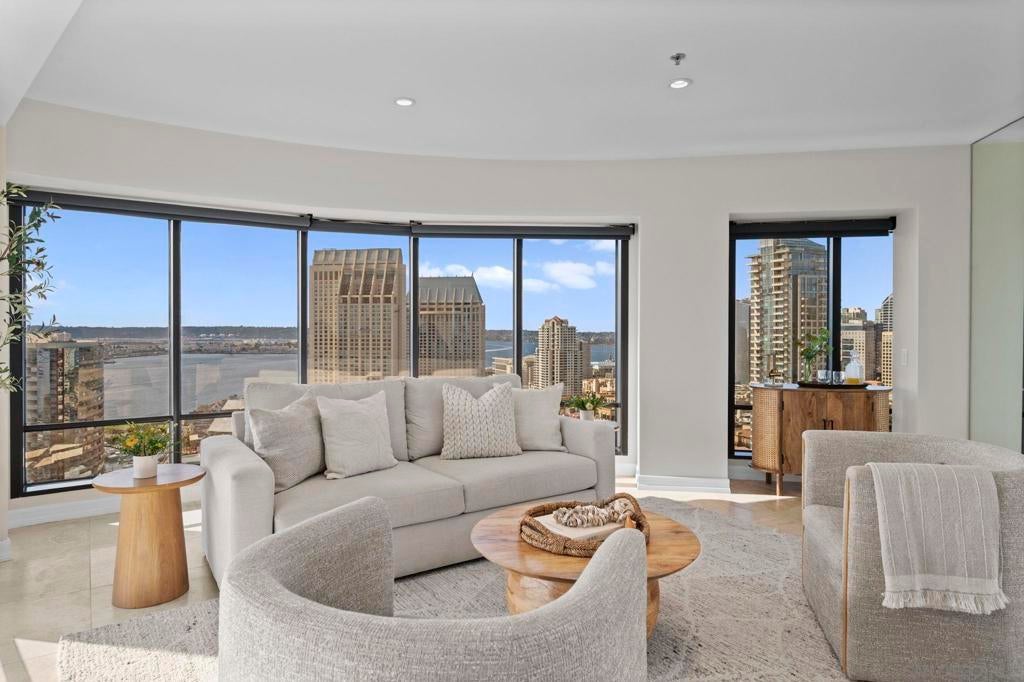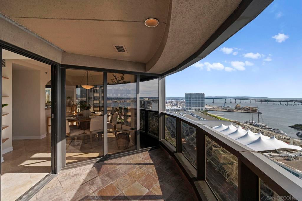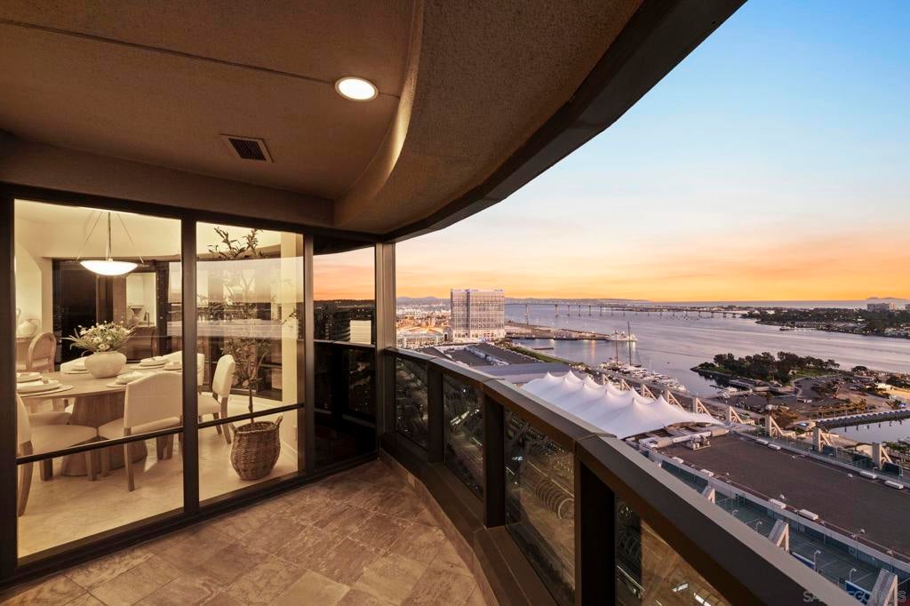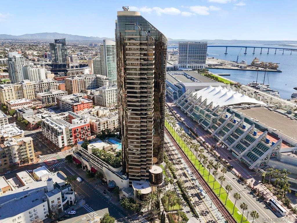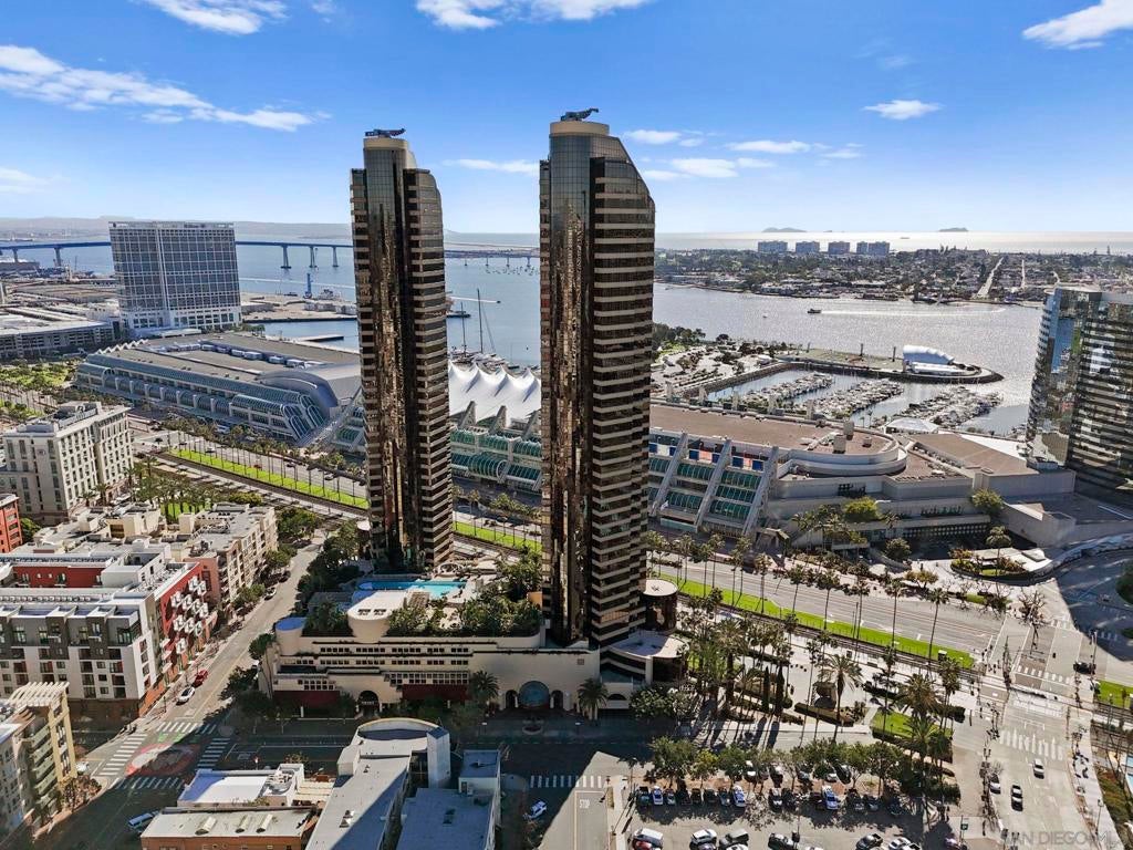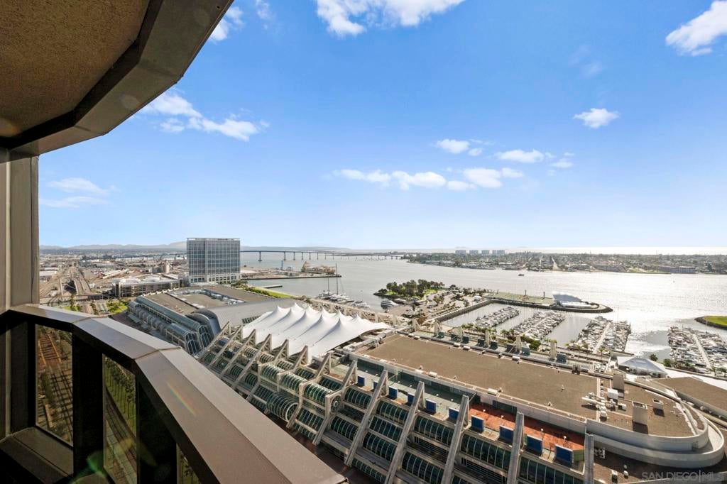 30th-floor bubble unit in the West Tower at the sought-after Harbor Club, featuring panoramic views of the Pacific Ocean, San Diego Bay, Downtown skyline, Coronado, and the Coronado Bridge. This 2-bedroom, 2-bath residence offers 1,474 sq ft of well appointed living space and a west-facing balcony with steady ocean breezes and sunset views. Harbor Club residents enjoy a full range of amenities including a heated lap pool, fitness center, sauna, club room, outdoor BBQ areas, and 24-hour front desk service. Two secured parking spaces included. Highly walkable location near the Gaslamp Quarter, Convention Center, Seaport Village, shopping, Petco Park, and the Downtown Marina.