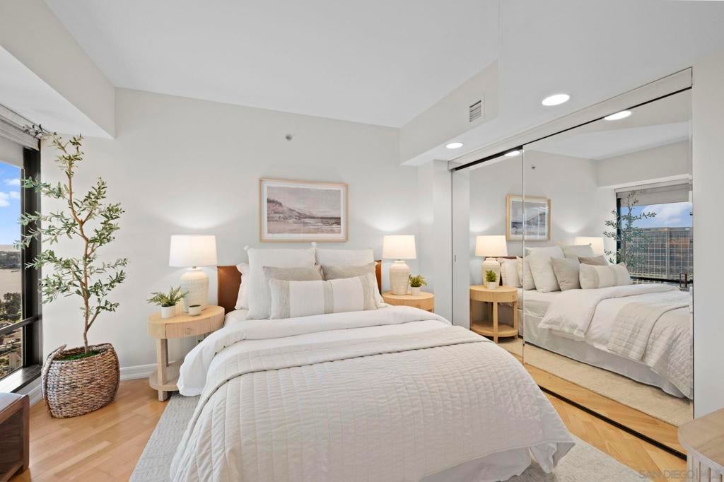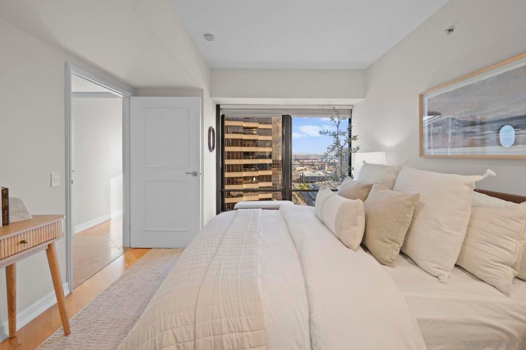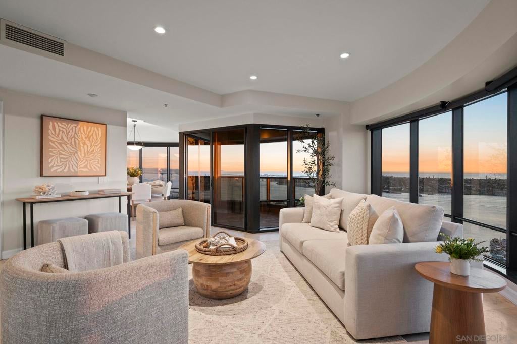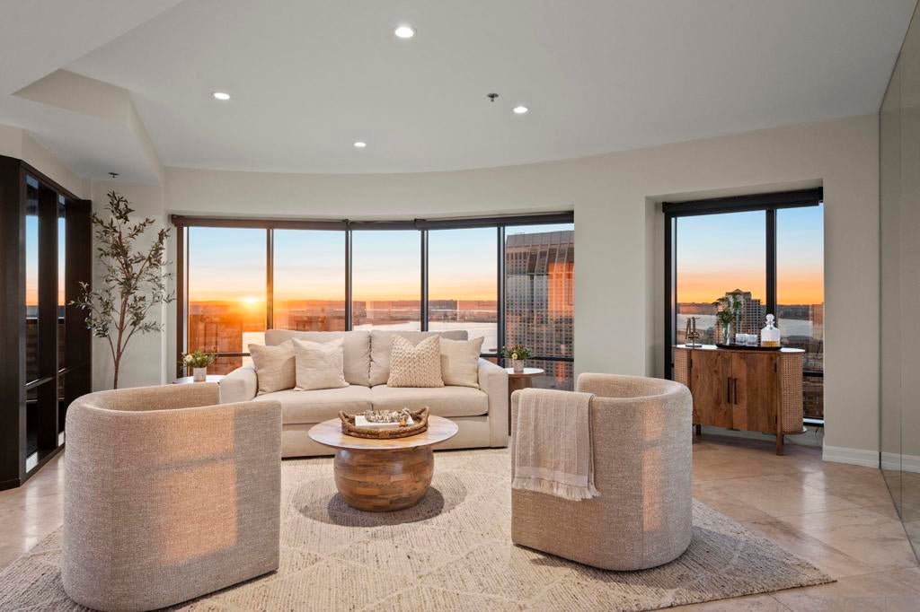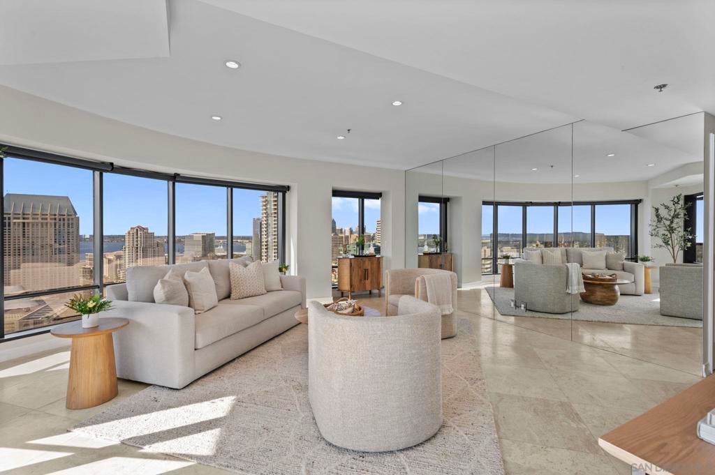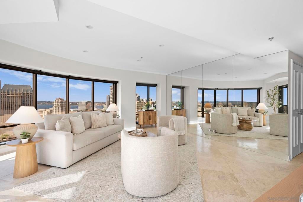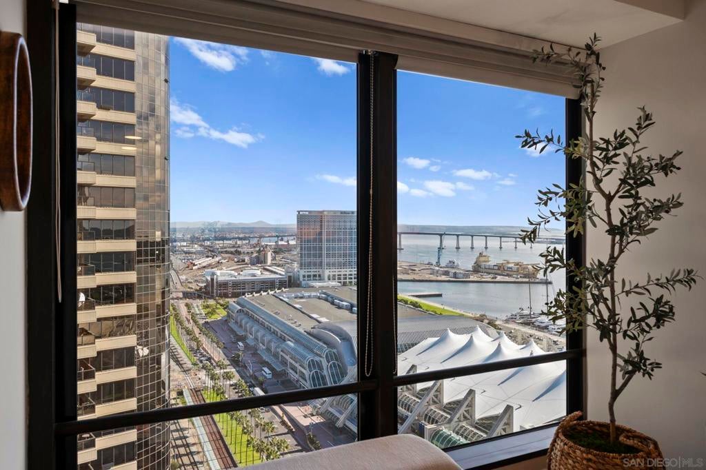30th-floor bubble unit in the West Tower at the sought-after Harbor Club, featuring panoramic views of the Pacific Ocean, San Diego Bay, Downtown skyline, Coronado, and the Coronado Bridge. This 2-bedroom, 2-bath residence offers 1,474 sq ft of well appointed living space and a west-facing balcony with steady ocean breezes and sunset views. Harbor Club residents enjoy a full range of amenities including a heated lap pool, fitness center, sauna, club room, outdoor BBQ areas, and 24-hour front desk service. Two secured parking spaces included. Highly walkable location near the Gaslamp Quarter, Convention Center, Seaport Village, shopping, Petco Park, and the Downtown Marina.
