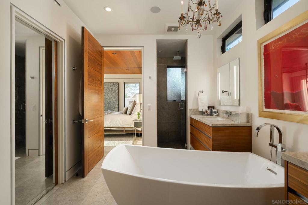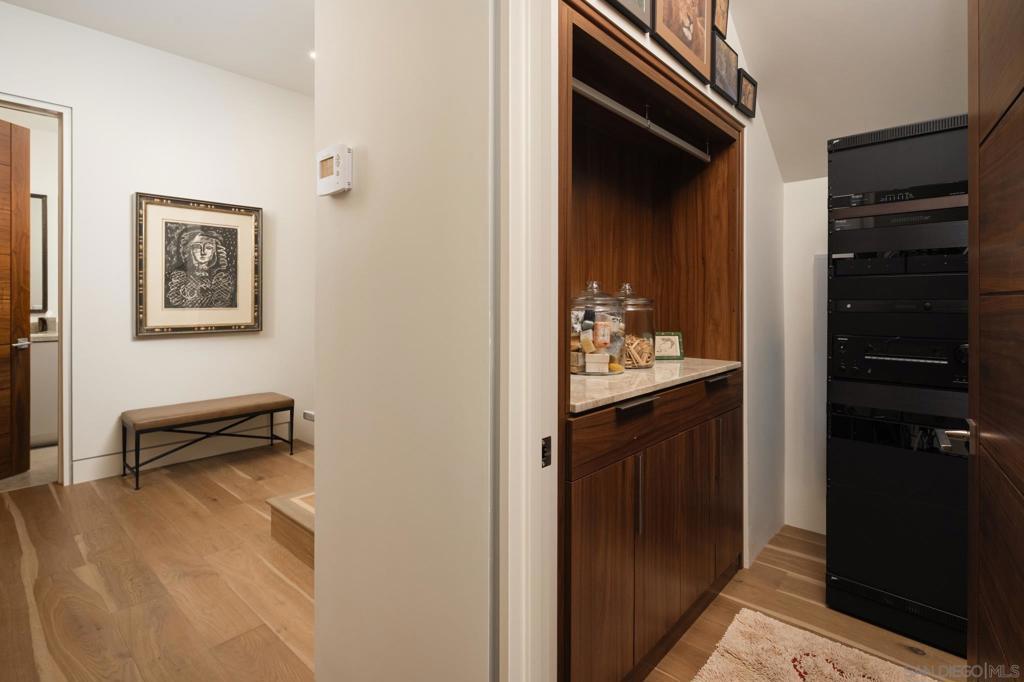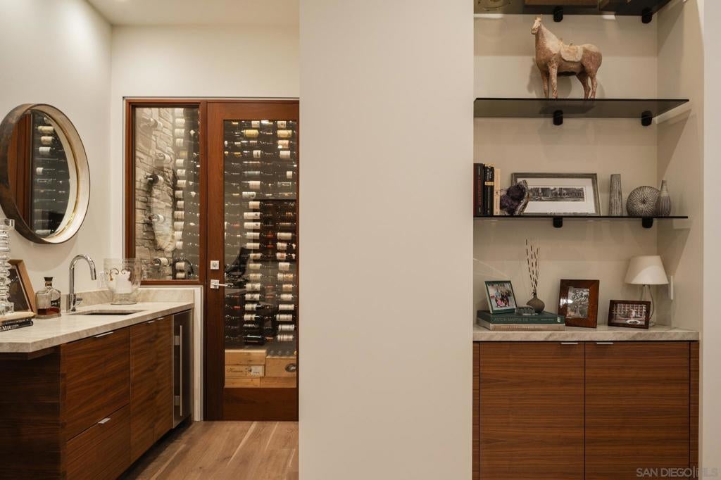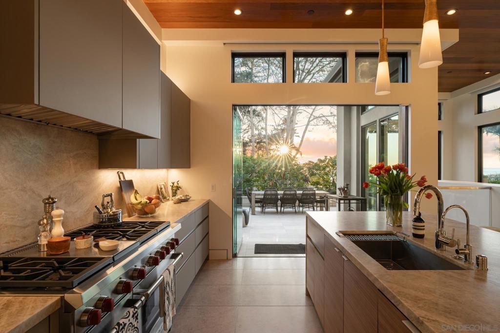 Set on a quiet, charming street in one of Del Mar’s most desirable coastal neighborhoods, 1970 Zapo is a custom-built modern residence that perfectly balances luxury, privacy, and an effortless lock-and-go lifestyle. Built in 2019, this 4 bedroom, 3.5 bath, 2,922 square foot home captures sweeping ocean views that feel equally special at sunrise and sunset, while remaining just a short walk to Del Mar’s beaches, The Del Mar Plaza, restaurants, and village amenities. Designed for both everyday comfort and refined entertaining, the main living level features an expansive great room framed by walls of glass bifold doors that seamlessly connect indoors and out. Rich Ipe wood ceilings and Gascon Blue limestone floors set a warm, contemporary tone, while the open floor plan allows the kitchen, dining, and living spaces to flow together with ease. The gourmet kitchen is a true centerpiece, appointed with Wolf appliances, a built-in cappuccino maker, dual Fisher & Paykel dishwashers, Sub-Zero refrigeration, Italian laminate cabinetry, and striking Taj Mahal quartzite countertops—equally suited for casual mornings or hosting at scale. The ocean-view primary suite offers a private retreat, complete with its own deck, a spa-like bath featuring a Jacuzzi soaking tub, double rain-head shower, and a generous walk-in closet with custom cabinetry. Downstairs, a thoughtfully designed guest wing includes three additional bedrooms and a spacious media room with wet bar, ideal for movie nights or extended stays. A temperature-controlled wine cellar with capacity for over 500 bottles adds a r A temperature-controlled wine cellar with capacity for over 500 bottles adds a refined touch for collectors and entertainers alike. Throughout the home, the quality of construction and attention to detail are immediately apparent, with custom cabinetry inserts, upgraded lighting, tailored drapery, enhanced HVAC filtration, and integrated smart features that make day-to-day living both comfortable and efficient. Outdoor spaces are equally inviting, with updated landscaping, a side yard with grass and ocean views perfect for relaxing or gardening, a fire pit, and a top-of-the-line spa for year-round enjoyment. Practical upgrades such as storm shutters, EV charging for two vehicles, and gated side access for privacy and pets further elevate the home’s functionality. Modern, private, and exceptionally easy to live in, 1970 Zapo offers a rare opportunity to enjoy contemporary coastal living in Del Mar—where panoramic ocean views, walkability, and refined design come together in a home that feels as luxurious as it is livable.