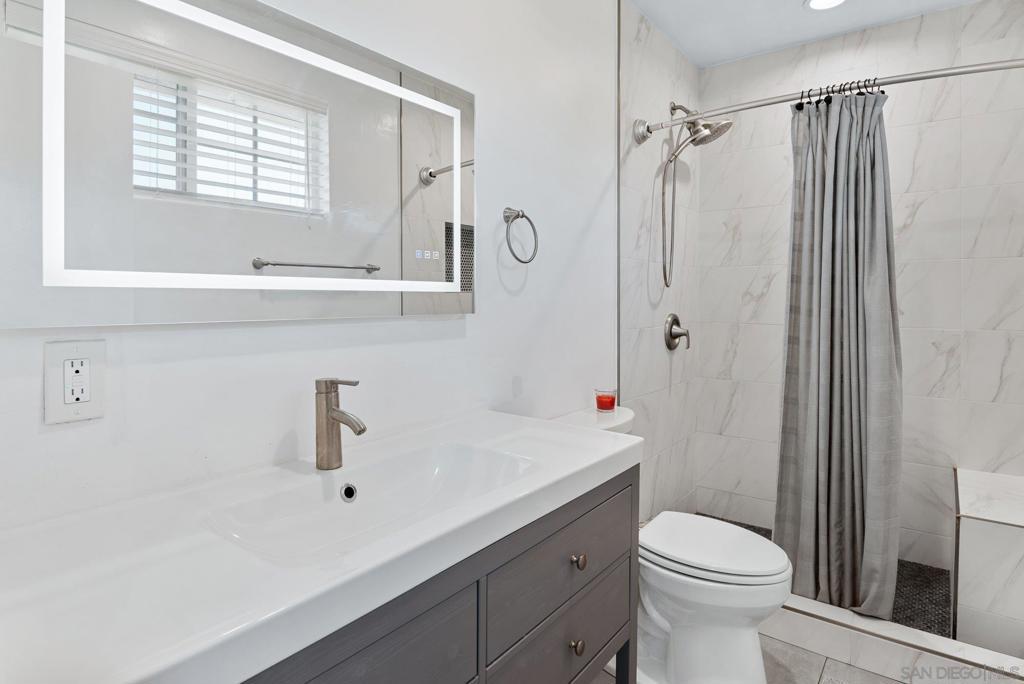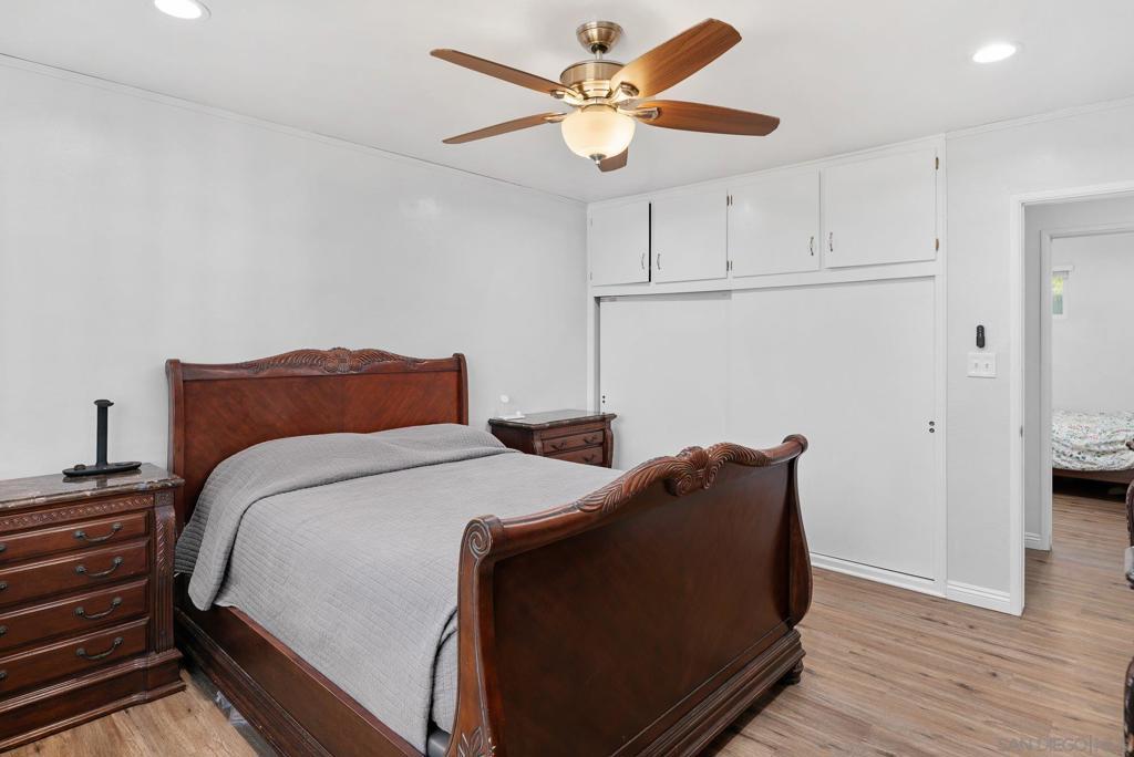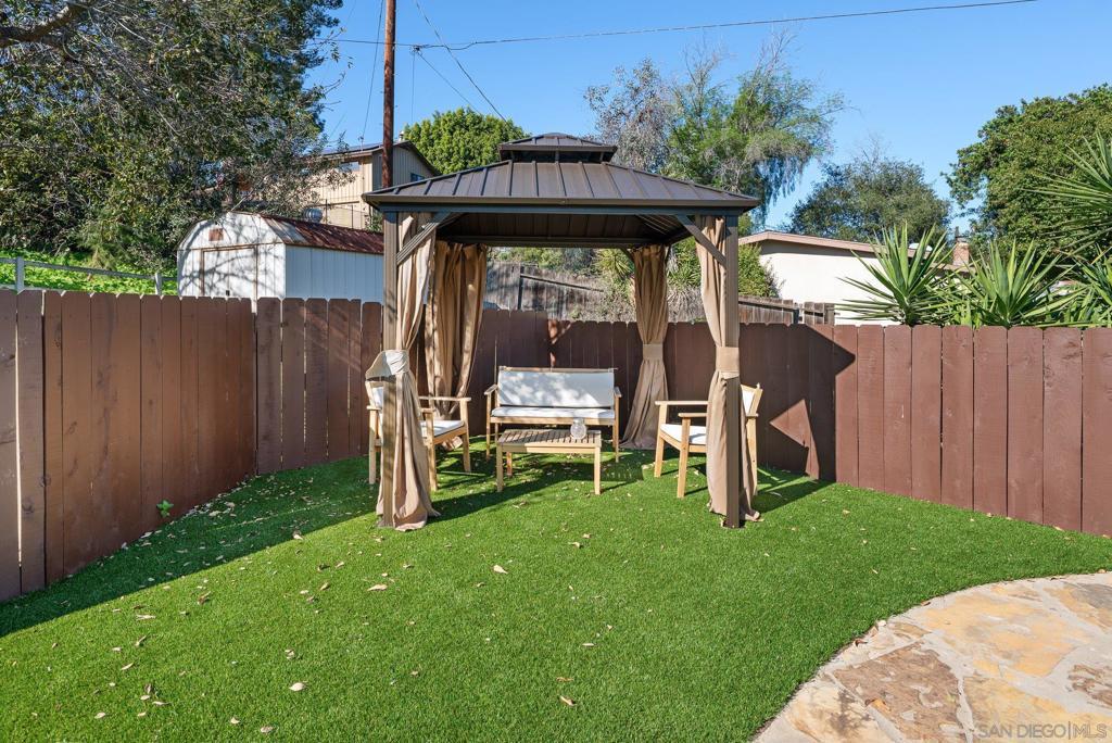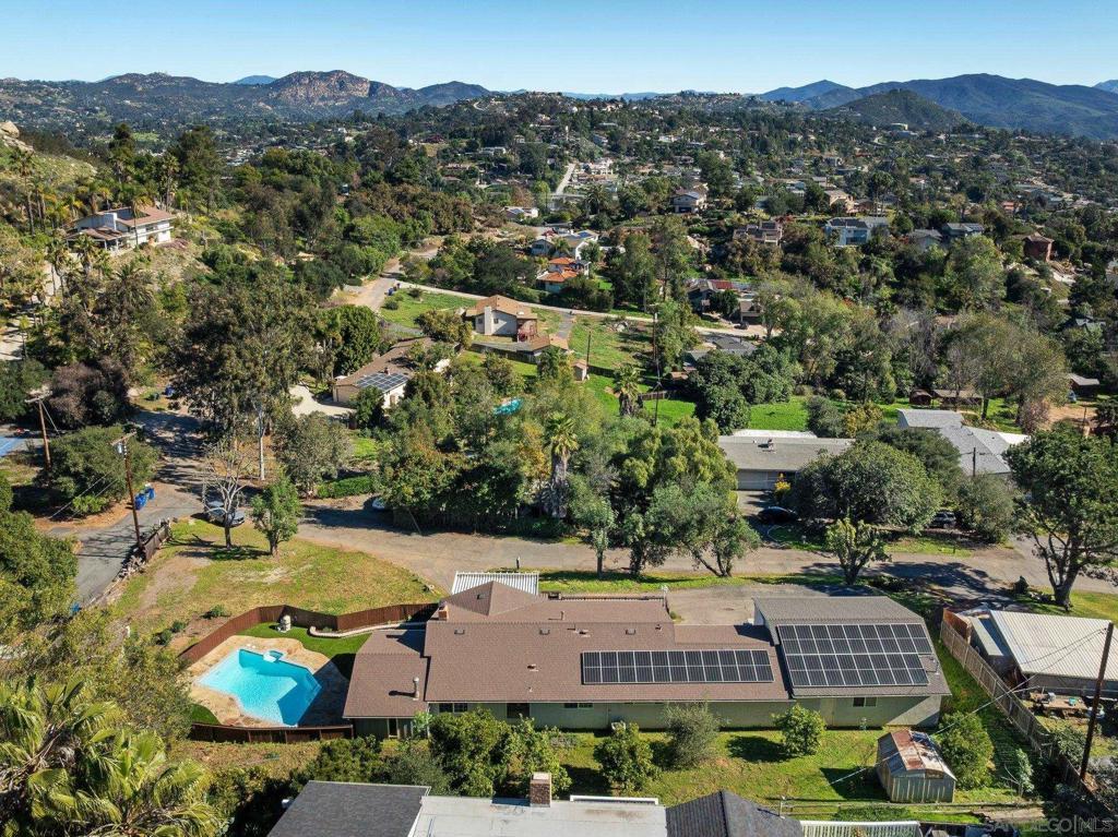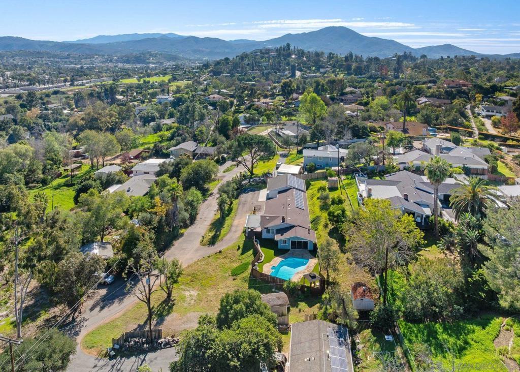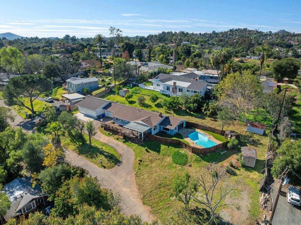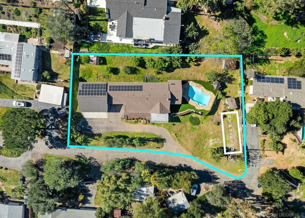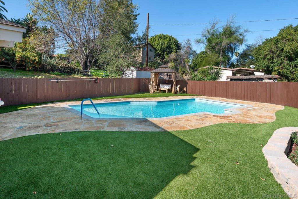 Experience private sanctuary living in San Diego. This unique home offers rare amenities, including both a three-car garage and an attached two-car garage. This provides ample space for vehicles and equipment, with the potential to convert one garage into an ADU for extended family. Perched above a private street, the home features a beautiful front porch ideal for dining or watching the sunset. Inside, you are greeted by a spacious living room with a cozy fireplace. An open kitchen serves both the living area and the family room, which includes a small potbelly fireplace and large sliding doors that lead directly to the backyard. The outdoor space boasts a recently renovated pool with new equipment, fresh fencing, and low-maintenance artificial grass, complemented by mature lemon and orange trees that run across the back of the property. Significant upgrades include a new: roof, plumbing, electrical, paid solar, HVAC, and flooring throughout. The bathrooms and kitchen have been fully renovated and feature new appliances, multiple refrigerators, and a wine fridge (see attached document for list of upgrades). The home is also equipped with two sets of laundry facilities and dedicated RV parking. Seller is entertaining offers between $1,159,000 to $1,259,000