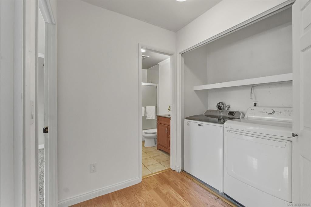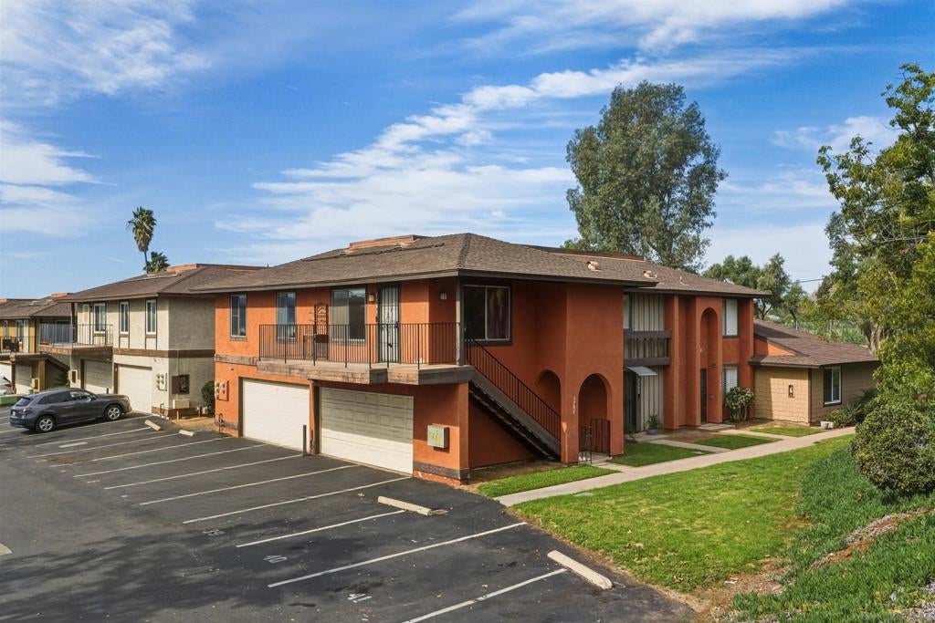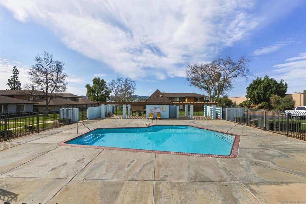 VA approved! Charming upstairs end unit condo with a bright, open floor plan and mountain views from the living area and private patio. This 2 bedroom, 1 bath home features laminate flooring in the living, dining, and hallway, a kitchen with dishwasher and built in microwave, and a full-size washer and dryer inside the unit. Enjoy the convenience of a garage with storage plus an additional parking space behind the garage. The community offers a sparkling pool and lush, mature landscaping throughout. Great location with easy access to shopping, dining, and freeways!