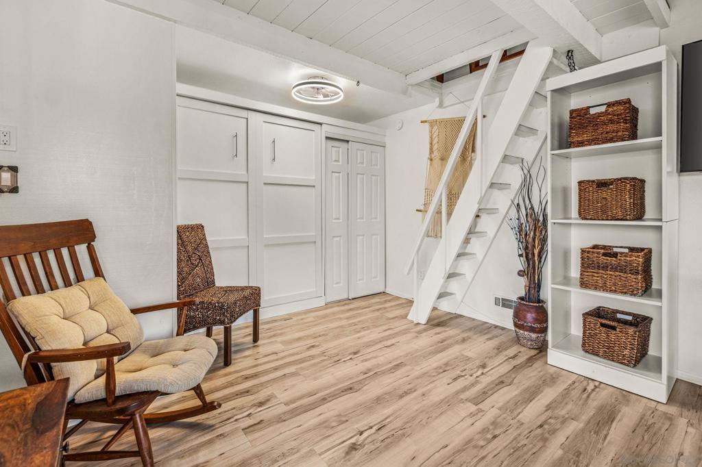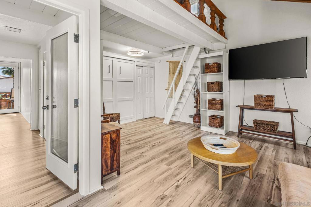 Welcome to SeaScape Shores, one of the most desirable bluff-top communities in Solana Beach. This exceptional corner unit residence offers private beach access just steps away, a rare amenity enjoyed by only a select few coastal communities. Experience the ultimate beach lifestyle with walking-distance access to Fletcher Cove Park and convenient public beach access. Stroll to nearby restaurants, bars, coffee shops, boutique shopping, and take the bridge across the street to the vibrant Cedros Avenue Design District. This beautifully maintained 2-bed, 2-bath home features an optional third bedroom with a queen Murphy bed and closet, queen pullout sofa, & is the only unit in the community offering this unique third-bedroom configuration. Designed for both comfort and flexibility, the property includes 3 loft spaces and two private balconies accessible from each room, cathedral ceilings with light-filled spaces that embrace the coastal breeze. Granite countertops, rich wood flooring, 6 tubular skylights for additional natural light, and paid-off solar panels for energy efficiency and long-term savings. Dedicated underground two-car garage provides convenient and secure parking. Short-term rentals permitted with a 30-day offering, excellent flexibility & income potential, especially during racing season, where bookings are in demand. Can be offered fully furnished and turnkey, ready for immediate enjoyment or revenue generation. Complete with bedding, linens, furniture, cookware, and household essentials, it’s an ideal vacation retreat or an investment property! Whether you’re searching for a primary residence, second home, or income-producing coastal escape, this rare SeaScape Shores opportunity delivers location, lifestyle, and lasting value.