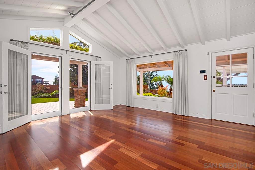 Character Exudes from every room of the vintage style, single story Del Mar Village Cottage. Enjoy Panoramic Ocean Views and upgraded features, Such as Remodeled Bathrooms, Brazilian Hardwood Floors, Open Beamed Ceilings, French Doors, High end Kitchen Appliances, AC, Floor to ceiling windows, Laundry rm & 2 car garage. Multiple Outside areas to enjoy the Amazing Coastal Views and Gorgeous Landscaping in a private, tranquil Setting. Live the Lifestyle of Walking to local Shops, Restaurants and the Beach!
