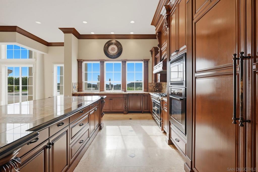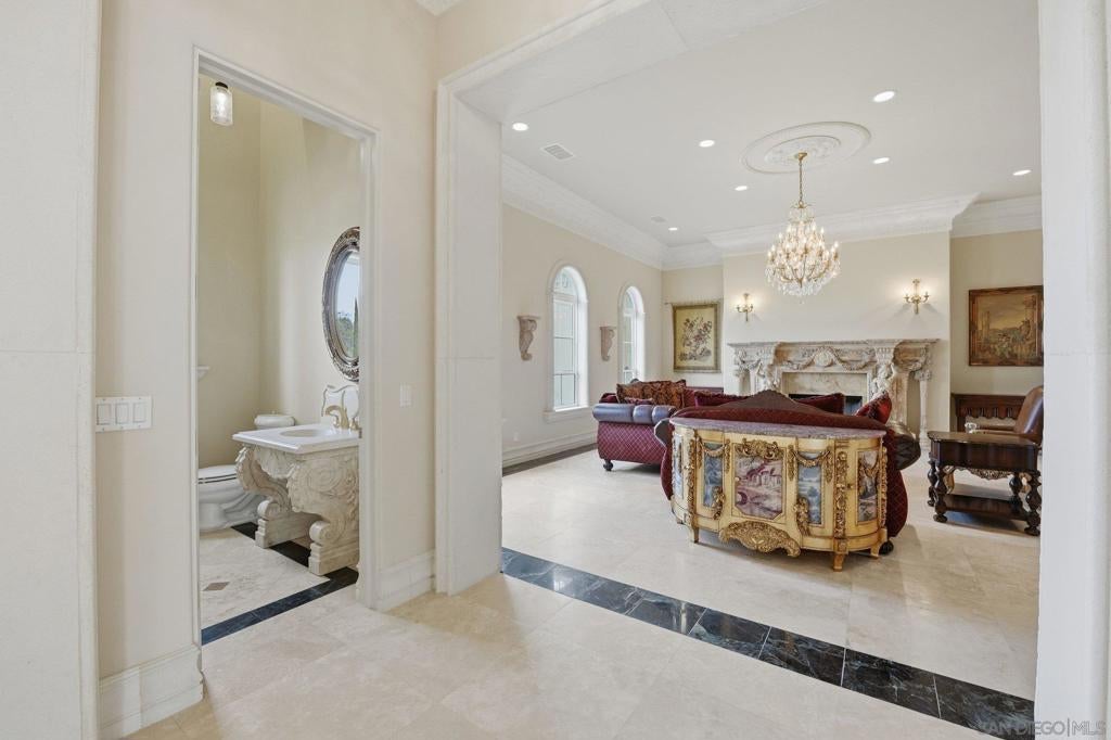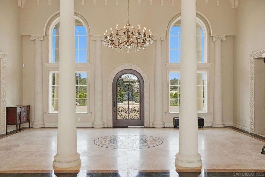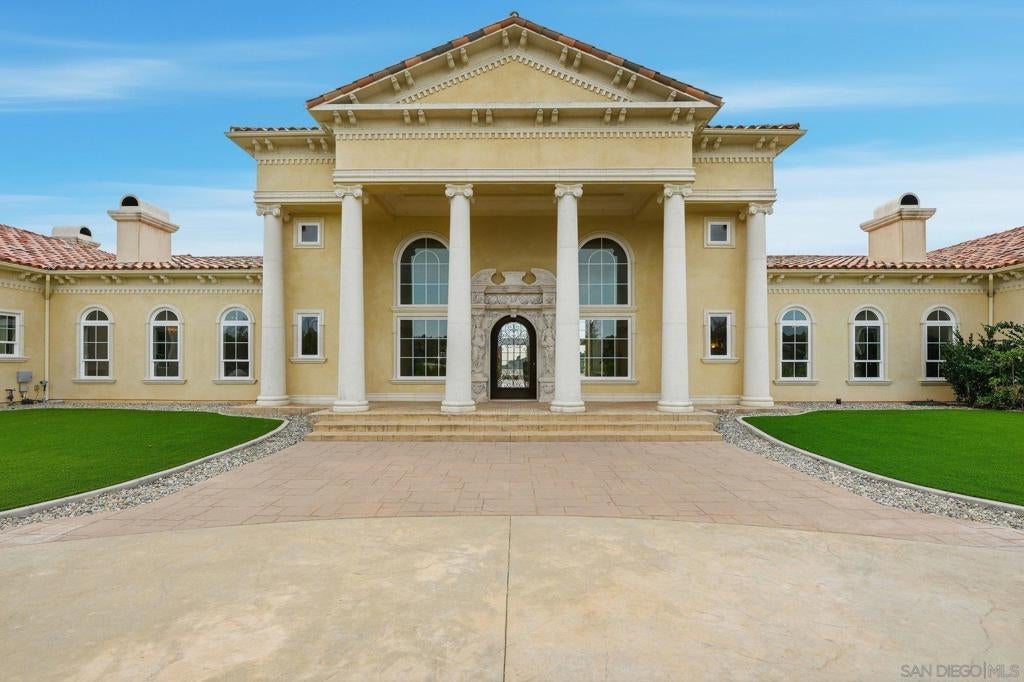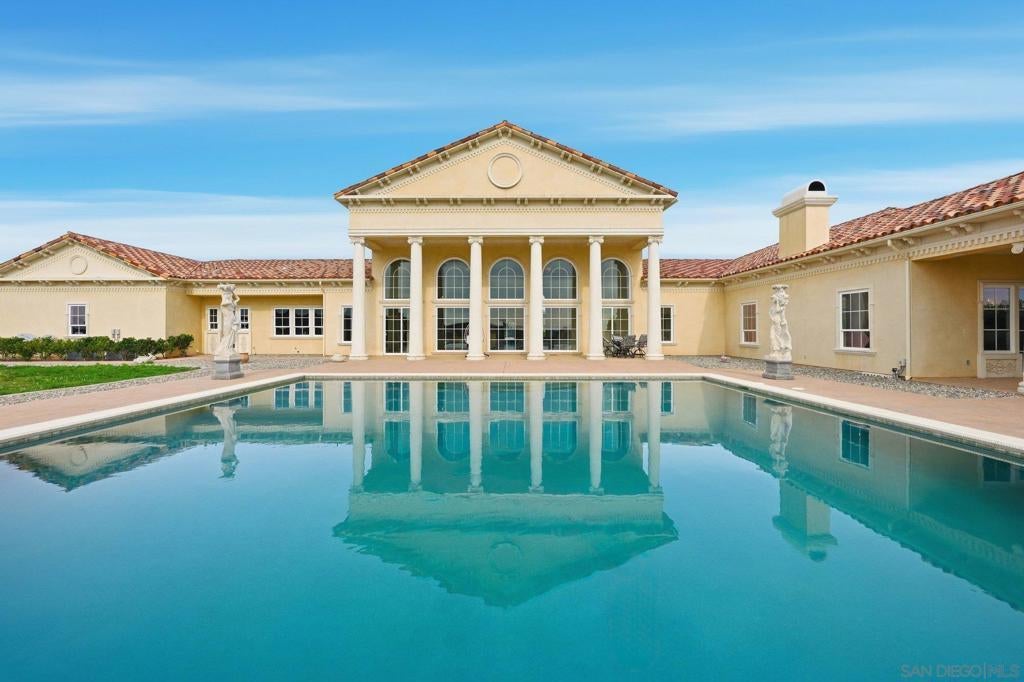 Luxury Live Auction! Bidding to start from $5,000,000! One of a kind Roman-inspired single-story estate set behind the guard-gated community of Meadow Oaks in La Cresta. Masterfully crafted, this irreplaceable residence blends old-world artistry with a warmth & livability rarely found at this scale. Soaring ceilings, grand arched windows, & hand-carved imported stone & wood details create timeless elegance that still feels inviting & comfortable. The approximately 10,784 sqft layout offers 5 ensuite bedrooms & 8 bathrooms, anchored by a 1,500 sqft owner’s suite with fireplace, spa-inspired bath, private gym, dedicated laundry, & direct access to the resort-style pool & oversized spa. Designed for entertaining, the estate includes a chef’s kitchen with La Cornue range, full-service bar & lounge, ballroom-style great room, private library, & home theater. Recent improvements totaling over $350,000 enhance both beauty and functionality, including extensive landscaping with approximately 450 Ficus Nitida trees for privacy, a completely redesigned irrigation system, new soil & grass, artificial turf in the front yard, river rock hardscaping, upgraded pond & well pumps, enhanced pool filtration, & an automated pool cleaning system. Interior upgrades include natural travertine marble flooring with decorative metallic inlays in multiple living areas. Set on nearly 5 acres of flat, usable land, the backyard opens to rolling green hills offering exceptional privacy & serenity. A private stocked pond & oversized garage ideal for car enthusiasts complete this truly bespoke estate.