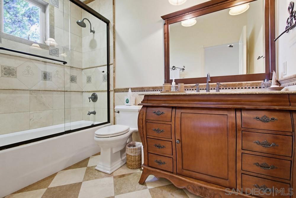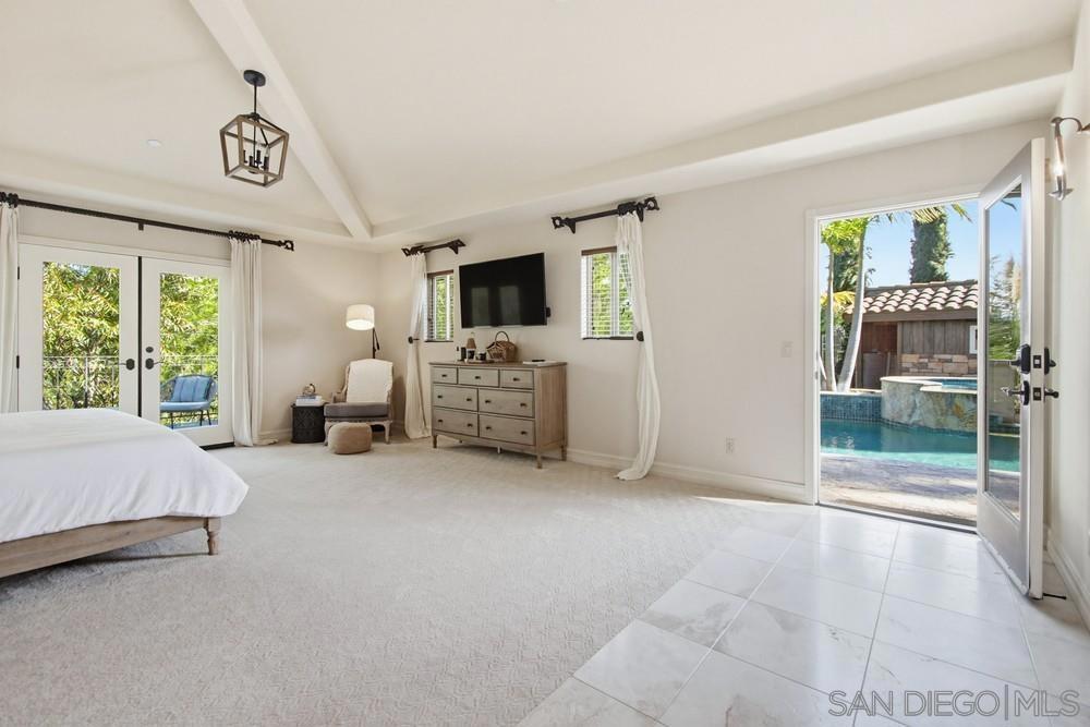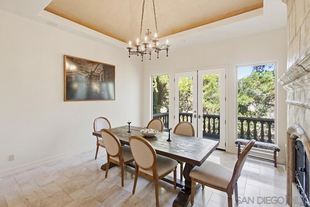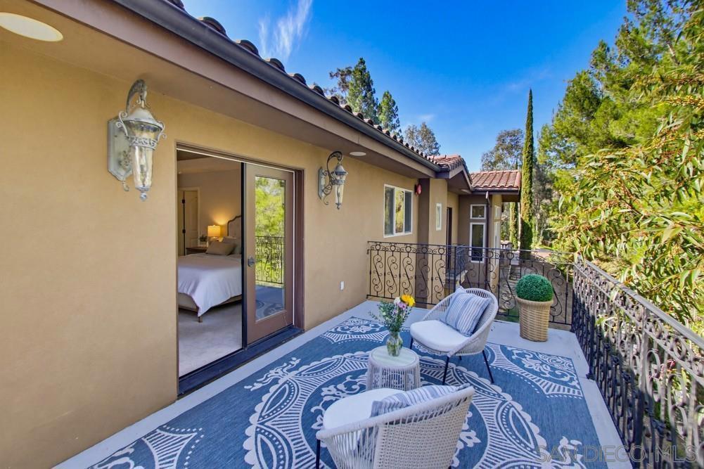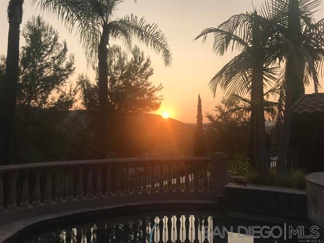 This custom home is truly one-of-a-kind, it is a custom-built Mediterranean estate where every detail was thoughtfully designed and sourced from Italy. Built completely from the ground up with no HOA and no Mello-Roos, this 5 bedroom, 4.5 bath home sits on over an acre in the award-winning Poway Unified School District and blends luxury, privacy, comfort, and functionality. From the moment you enter, detailed Italian marble inlay flooring, grand columns, arches, and designer lighting showcase the level of craftsmanship found throughout. The home features a state-of-the-art 3-stage air filtration system with HEPA filters, Honeywell electronic filtration, infrared light scanning, and hydration pads, along with whole-home distributed audio and a built-in home theater speaker system. The great room stuns with soaring vaulted ceilings, exposed beams, skylights, and a grand double-sided stone fireplace separating the living and dining areas, complemented by large windows and a balcony capturing sweeping canyon views. The chef’s kitchen is equally impressive with granite countertops, Thermador appliances, island bench, wine storage, glass-front display cabinetry, abundant storage, and expansive sliding doors leading to outdoor dining and entertaining. Ideal for today’s lifestyle, the home includes an office/library with custom built-ins and multiple work-from-home spaces perfect for Zoom calls. The oversized primary suite offers a private balcony, direct pool and spa access, and a picture window framing breathtaking canyon views. The resort-style backyard features a sparkling in-ground pool, raised spa with waterfall, endless sky views, a custom imported Italian pizza oven, and a fully built-in outdoor kitchen with a 42” Lynx grill and outdoor refrigeration, perfect for alfresco entertaining. Low-maintenance stone-paved gardens surround the home, while the fully irrigated hillside above is ready for a vineyard. Additional highlights include a large 3.5-car garage with workbench and 220V power for electric vehicles, 9KW SunPower solar panels for energy efficiency, and nearby horse boarding and facilities within walking distance at Creek Road Ranch. Located close to Scripps Ranch and Poway amenities and top-rated schools, this elegant custom estate is packed with lifestyle features and ready to be enjoyed.