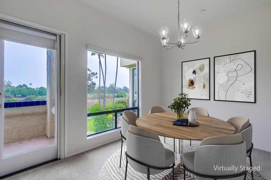 Spectacular top floor corner residence in The Summit at Masters Hill offering panoramic views spanning West, North, and East overlooking the Bernardo Heights Golf Course and surrounding mountains. This exceptional home is ideal as a snowbird or lock and leave retreat or a full time residence. Designed for effortless single level living, this light and bright home features large picture windows that capture the views, brand new carpet, fresh interior paint, and a brand new HVAC system for year round comfort. The updated kitchen offers ample storage, a pantry, and generous counter space. The spacious primary suite features a dual vanity and abundant closet space. The second bedroom offers mirrored closet doors and convenient direct access to the second bathroom, making it perfect for guests or a home office. Enjoy beautiful pool and spa views from the private balcony. The building offers elevator access with no interior or exterior stairs, creating easy accessibility and a truly low maintenance lifestyle. HOA includes membership to the Bernardo Heights Community Center with pools, tennis courts, fitness center, and more. Located in the award winning Poway Unified School District. Spectacular top floor corner residence in The Summit at Masters Hill offering panoramic views spanning West, North, and East overlooking the Bernardo Heights Golf Course and surrounding mountains. This exceptional home is ideal as a snowbird or lock and leave retreat or a full time residence. Designed for effortless single level living, this light and bright home features large picture windows that capture the views, brand new carpet, fresh interior paint, and a brand new HVAC system for year round comfort. The updated kitchen offers ample storage, a pantry, and generous counter space. The spacious primary suite features a dual vanity and abundant closet space. The second bedroom offers mirrored closet doors and convenient direct access to the second bathroom, making it perfect for guests or a home office. Enjoy beautiful pool and spa views from the private balcony. The building offers elevator access with no interior or exterior stairs, creating easy accessibility and a truly low maintenance lifestyle. HOA includes membership to the Bernardo Heights Community Center with pools, tennis courts, fitness center, and more. Located in the award winning Poway Unified School District.