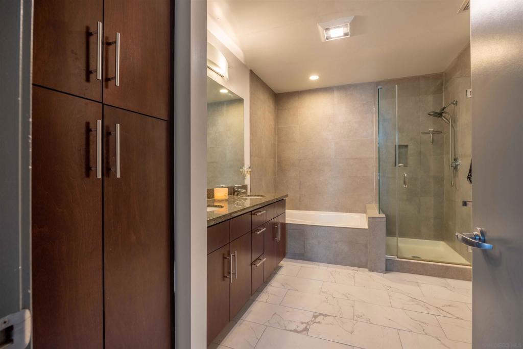 Experience luxury in this 1 bed, 2 bath Loft with 11ft ceilings and sophisticated designer finishes throughout, including: German White Oak Floors, Upgraded Lighting, Spa-inspired Custom Bathrooms, Custom Kitchen with Quartz Counters, High-End Stainless Steel Appliances & Built-in Wine Fridge. In-unit Laundry & TWO Parking Spots included. Building amenities include a Rooftop Deck, BBQ area, Fitness Center, and Courtyard. Walkable to shops, restaurants, and Petco Park, perfect for embracing urban living.