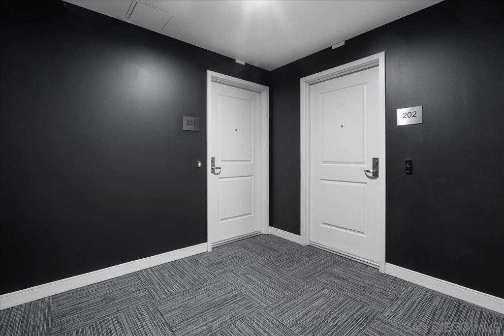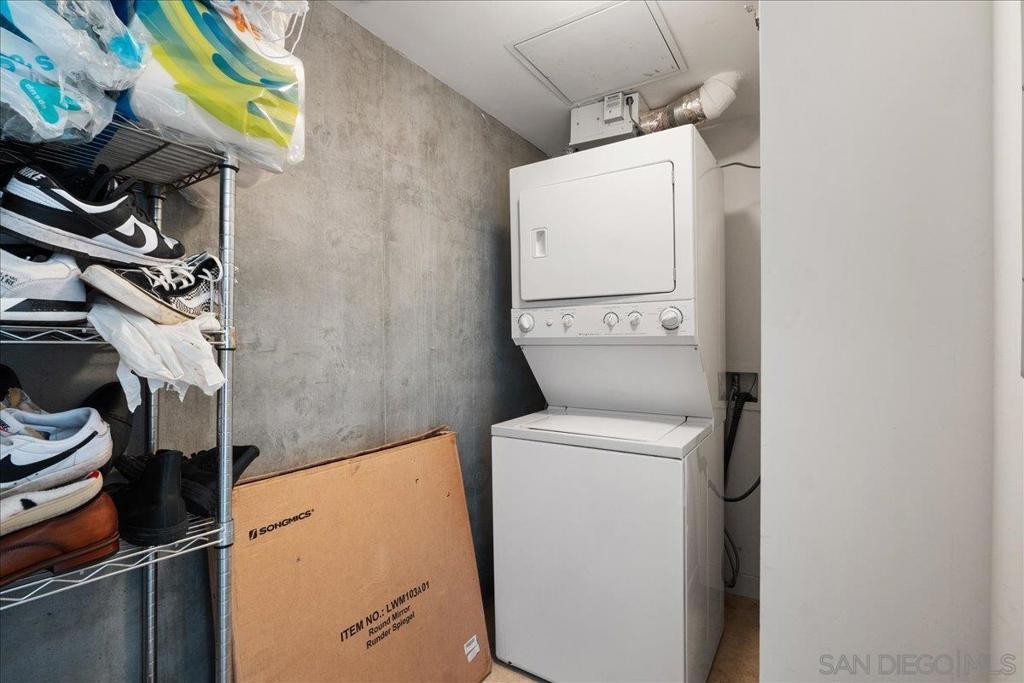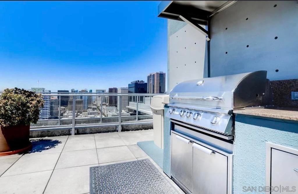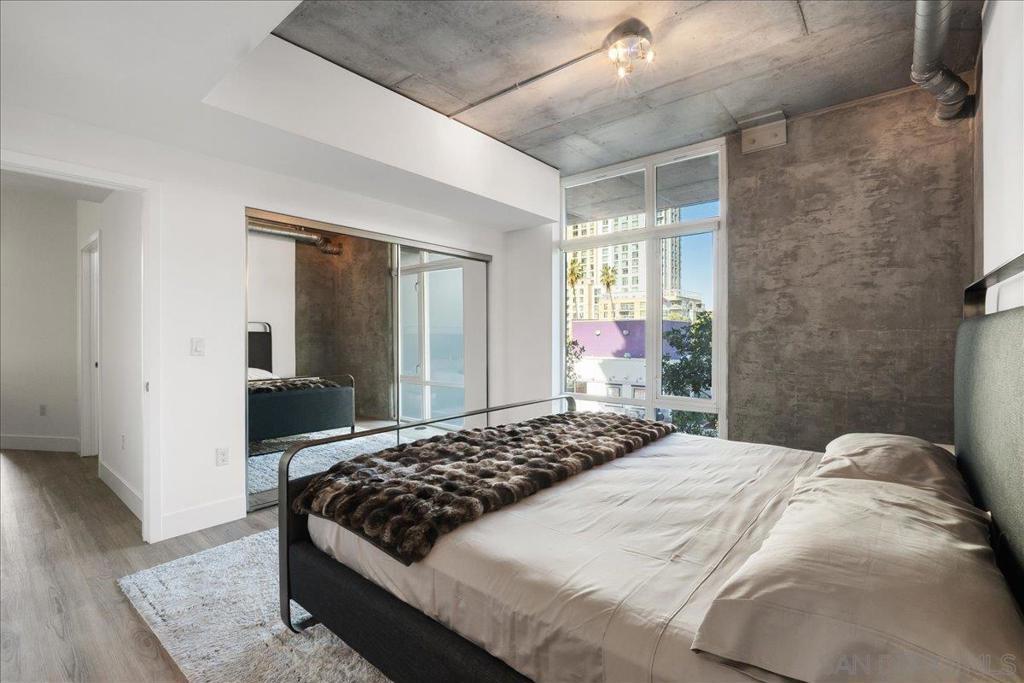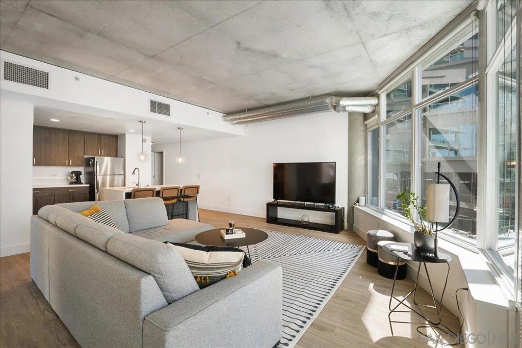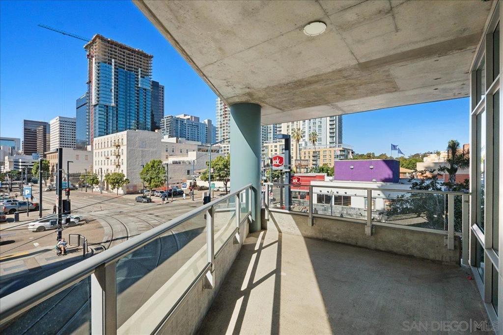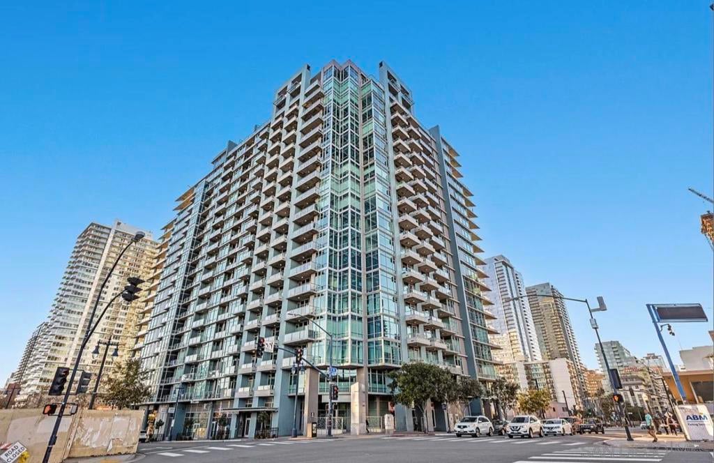 Highly desirable corner residence in the Smart Corner building showcasing floor-to-ceiling windows and abundant natural light in the heart of East Village. One of the largest floor plans in the community, this industrial-inspired 2-bedroom, 2-bath condo offers approximately 1,284 sq ft with a modern open layout designed for upscale urban living. The bright kitchen with island flows seamlessly into the main living space, creating an ideal setting for entertaining, while the covered patio and in-unit laundry provide everyday convenience. The building features convenient ground-floor retail including 7-Eleven and Subway, adding everyday accessibility right at your doorstep. Ideally located within walking distance to the Gaslamp District, Petco Park, Balboa Park, dining, nightlife, and trolley access, this residence captures the true downtown lifestyle. The garage includes two tandem parking spaces and direct access toward Hwy 163 and Interstate 5 for effortless commuting. HOA amenities include a fitness center, panoramic rooftop deck with spa and BBQ grills, and sweeping views of downtown, Coronado, and the surrounding coastline. A prime opportunity for luxury city living or investment in one of San Diego’s most vibrant neighborhoods.
