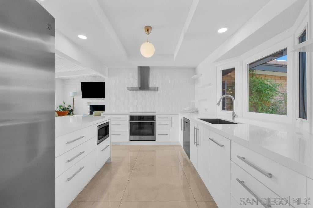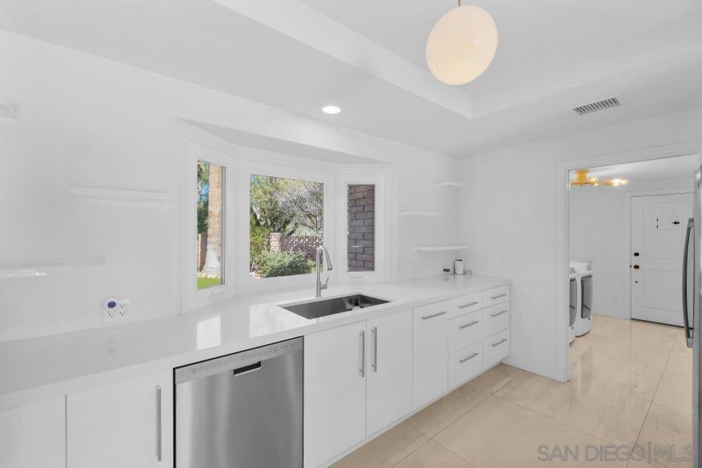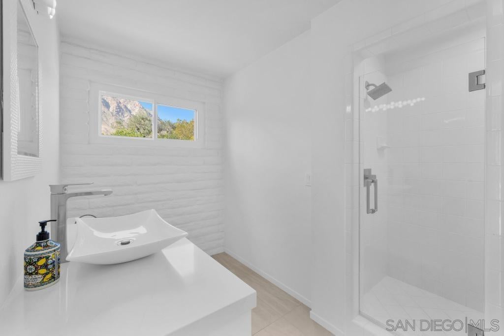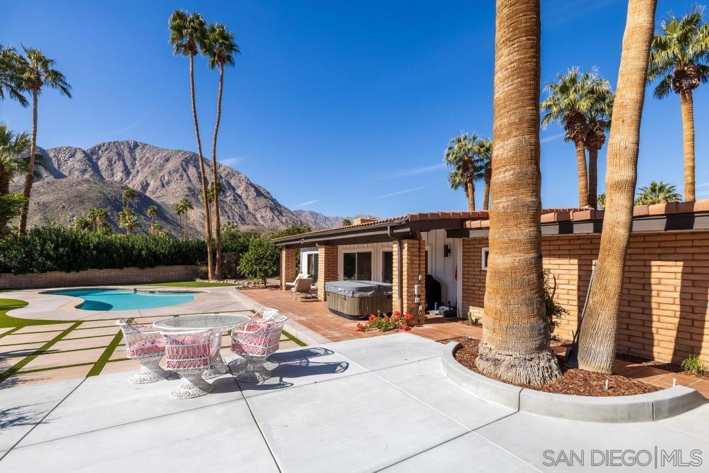 Prepare to be captivated by this exceptional, fully remodeled contemporary home overlooking the De Anza Golf Course, with sweeping mountain views that elevate everyday living. Thoughtfully redesigned from top to bottom, this residence feels straight out of a luxury design magazine, showcasing 3’x3’ porcelain tile throughout and a show-stopping, professionally designed kitchen featuring quartz countertops, beautiful custom cabinetry, and stainless steel appliancesExtensive upgrades include fully remodeled bathrooms, retextured walls with fresh interior paint, a tankless water heater, newer windows and sliders, a remodeled laundry room, and a newer HVAC system with iWave air purifier. The outdoor space is equally impressive, highlighted by a sparkling pool recently resurfaced, all-new hardscape and synthetic turf, a newer pool heater, pump, and filter, and beautifully updated landscaping with irrigation.Additional improvements include a newer roof, upgraded electrical and plumbing infrastructure, custom his-and-hers closets, a glass fireplace, an alarm system, and multiple gated yard areas offering privacy and flexibility. A large paver driveway provides ample parking for guests or an RV, complemented by a dedicated golf cart pad.This breathtaking, move-in-ready home delivers style, comfort, and resort-like living in one remarkable package.