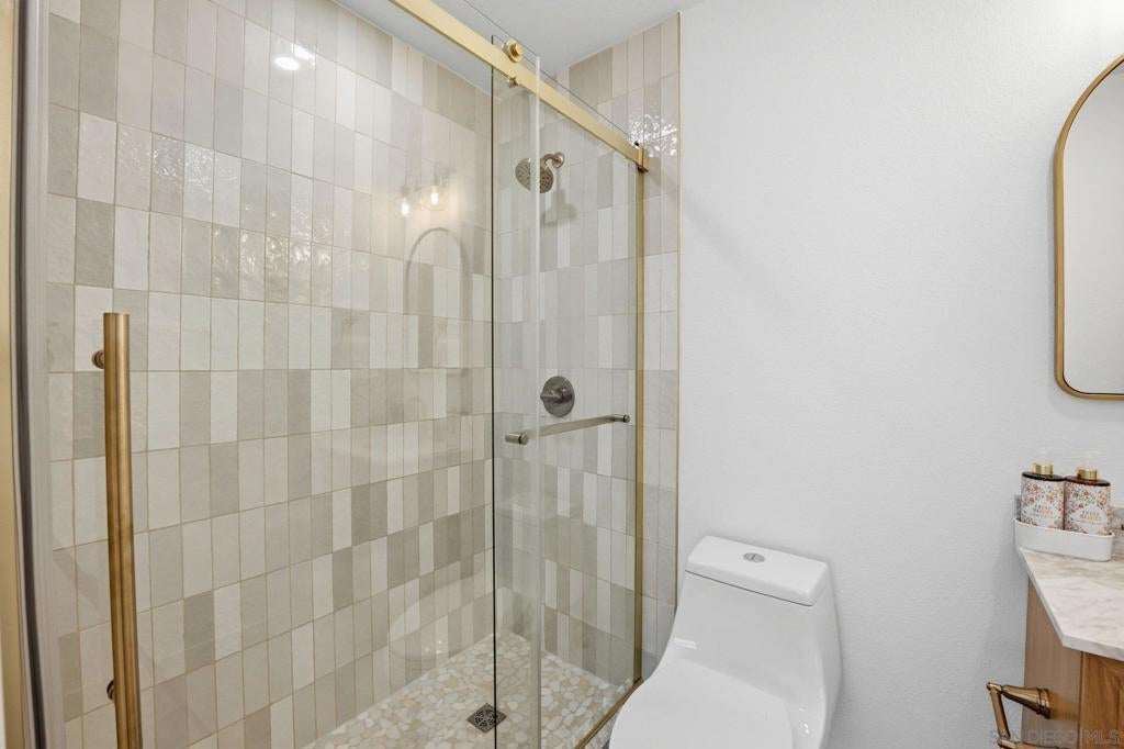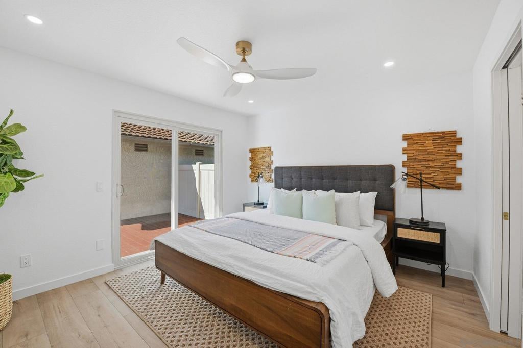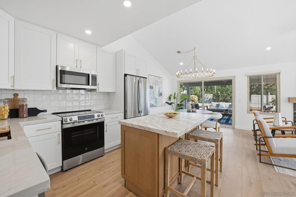 Totally remodeled, turnkey 3BR/2BA single-level home in the highly desirable 55+ community of High Country Villas in Encinitas. Bright, modern 1,056 sq ft with new luxury vinyl plank flooring, fresh interior paint, and a custom marble fireplace. Stunning updated kitchen with sleek cabinetry, natural stone countertops, and stainless appliances. Both bathrooms fully renovated with tiled showers, new vanities, and modern fixtures. Spacious primary suite plus two secondary bedrooms ideal for guests, office, or hobbies. Private patio with mountain views—perfect for morning coffee and sunset evenings. Resort-style amenities include pool/spa, 9-hole golf, clubhouse, pickleball, and walking trails with a low monthly HOA. Minutes to beaches, shopping, and dining—turnkey 55+ living at its best. Welcome home to a completely remodeled, turnkey 3-bedroom, 2-bath residence in the highly sought-after 55+ community of High Country Villas in Encinitas. This single-level home offers 1,056 sq ft of bright, modern living with thoughtful upgrades throughout. Step inside to a fresh contemporary interior featuring new luxury vinyl plank flooring, all-new paint, and a custom marble fireplace that anchors the living space. The kitchen has been fully reimagined with sleek cabinetry, natural stone countertops, and stainless steel appliances—perfect for everyday living or entertaining. Both bathrooms have been beautifully upgraded with tiled showers, new vanities, and modern fixtures. The spacious primary suite includes an updated en-suite bath and generous closet space, while two additional bedrooms offer flexibility for guests, a home office, or hobbies. Enjoy two private patios, one with mountain views—ideal for morning coffee and sunset evenings. High Country Villas delivers a relaxed, resort-style lifestyle with amenities including a pool and spa, 9-hole golf course, clubhouse, pickleball courts, and scenic walking trails—all with a low monthly HOA. Just minutes to beaches, shopping, dining, and everything coastal North County has to offer, this home pairs modern upgrades with the easygoing Encinitas lifestyle. Move-in ready 55+ living at its best.