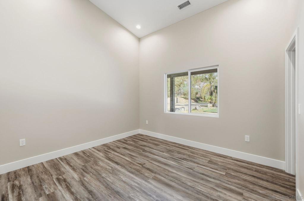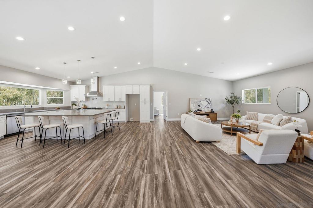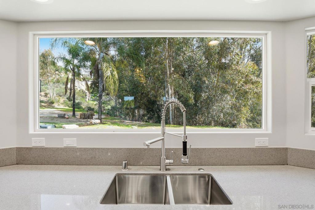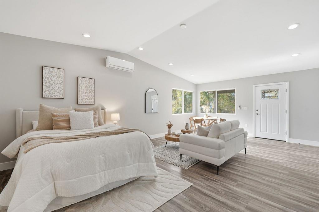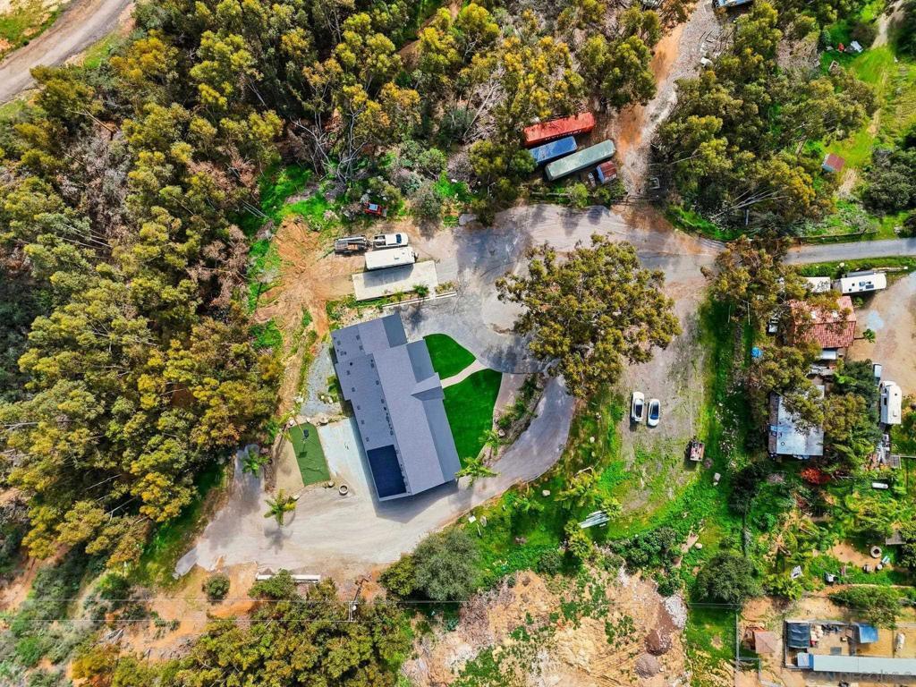 Welcome to 9965 Dunbar Lane in El Cajon. You have finally found a move-in ready home with a ton of upgrades and located on flat usable land. Behind a beautiful gate, this property is tucked away and surrounded by palm and eucalyptus trees for extra privacy and a peaceful vibe. This home features 4 spacious bedrooms and 2.5 bathrooms, all on a single level with high vaulted ceilings and an open floor plan that is bright and airy. Need flexibility? The attached studio ADU has its own entrance, vaulted ceiling, new mini-split heating/cooling unit, water heater, microwave, kitchen area and laundry hookups—perfect for guests, a home office, or rental income. Almost everything here is brand new—hvac, dual-pane windows, electrical, plumbing, ducting, flooring, insulation, water heater, light fixtures, kitchen appliances, countertops, cabinets, bathrooms, roof, and more. The main kitchen is a showstopper with a massive island (7.5’ x 8’), 8-burner Forno oven/stove which can be used with or without the griddle, solid surface countertops, and stylish tile backsplash. The primary suite has a huge walk-in closet and built-in blinds in the sliding dual-pane door, plus the laundry area is conveniently located near all of the bedrooms. Natural light pours in from windows all around, making every room feel cheerful. Outside, you’ll find new turf in front and plenty of space to park your RV, boat and offroad toys. The solar system will save you money and keep your utility costs low. This home offers the feel of a brand-new house in a peaceful, secluded location, fulfilling all of your requirements. Come see it for yourself!