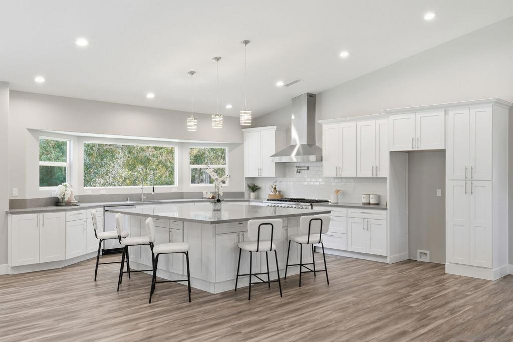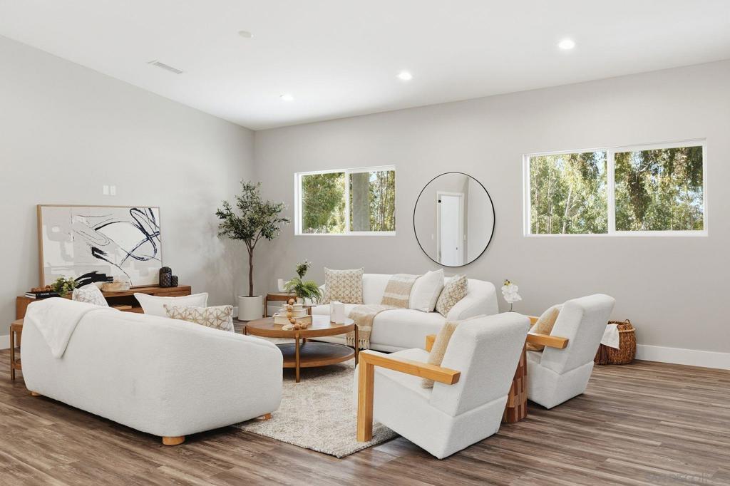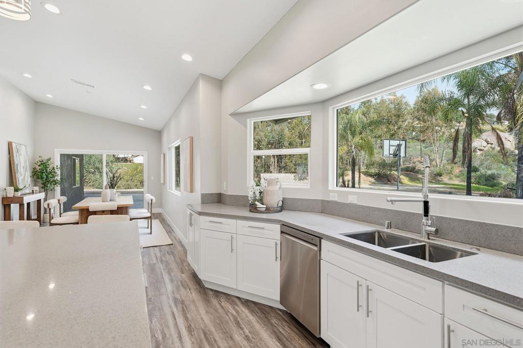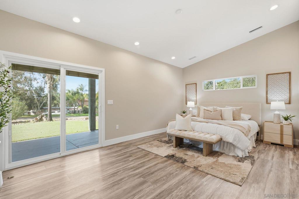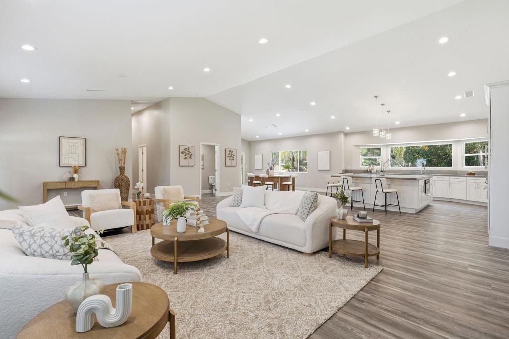 Welcome to 9965 Dunbar Lane in El Cajon. You have finally found a move-in ready home with a ton of upgrades and located on flat usable land. Behind a beautiful gate, this property is tucked away and surrounded by palm and eucalyptus trees for extra privacy and a peaceful vibe. This home features 4 spacious bedrooms and 2.5 bathrooms, all on a single level with high vaulted ceilings and an open floor plan that is bright and airy. Need flexibility? The attached studio ADU has its own entrance, vaulted ceiling, new mini-split heating/cooling unit, water heater, microwave, kitchen area and laundry hookups—perfect for guests, a home office, or rental income. Almost everything here is brand new—hvac, dual-pane windows, electrical, plumbing, ducting, flooring, insulation, water heater, light fixtures, kitchen appliances, countertops, cabinets, bathrooms, roof, and more. The main kitchen is a showstopper with a massive island (7.5’ x 8’), 8-burner Forno oven/stove which can be used with or without the griddle, solid surface countertops, and stylish tile backsplash. The primary suite has a huge walk-in closet and built-in blinds in the sliding dual-pane door, plus the laundry area is conveniently located near all of the bedrooms. Natural light pours in from windows all around, making every room feel cheerful. Outside, you’ll find new turf in front and plenty of space to park your RV, boat and offroad toys. The solar system will save you money and keep your utility costs low. This home offers the feel of a brand-new house in a peaceful, secluded location, fulfilling all of your requirements. Come see it for yourself!