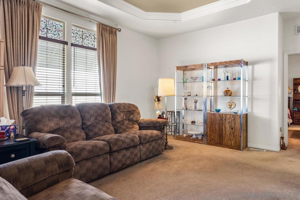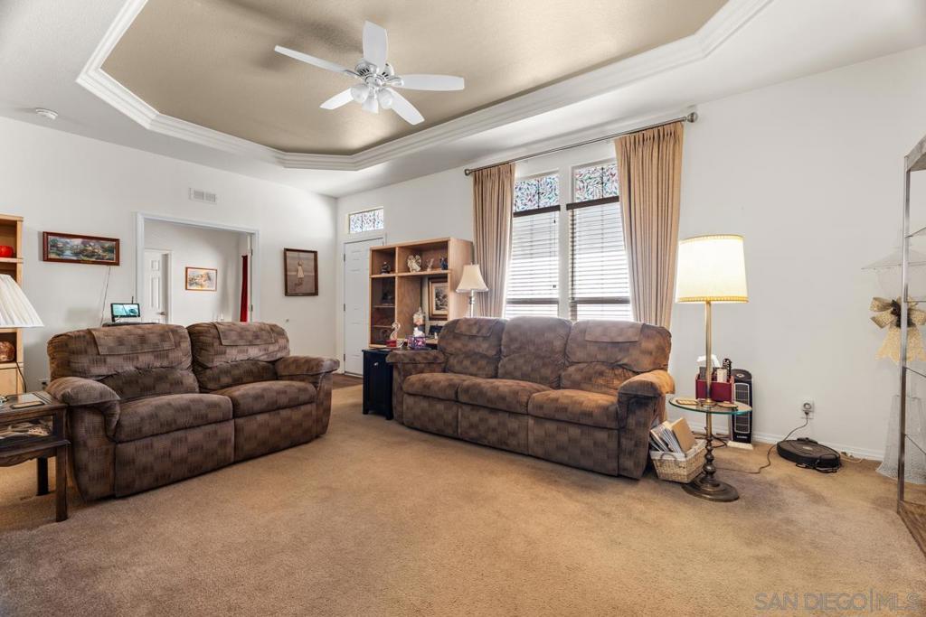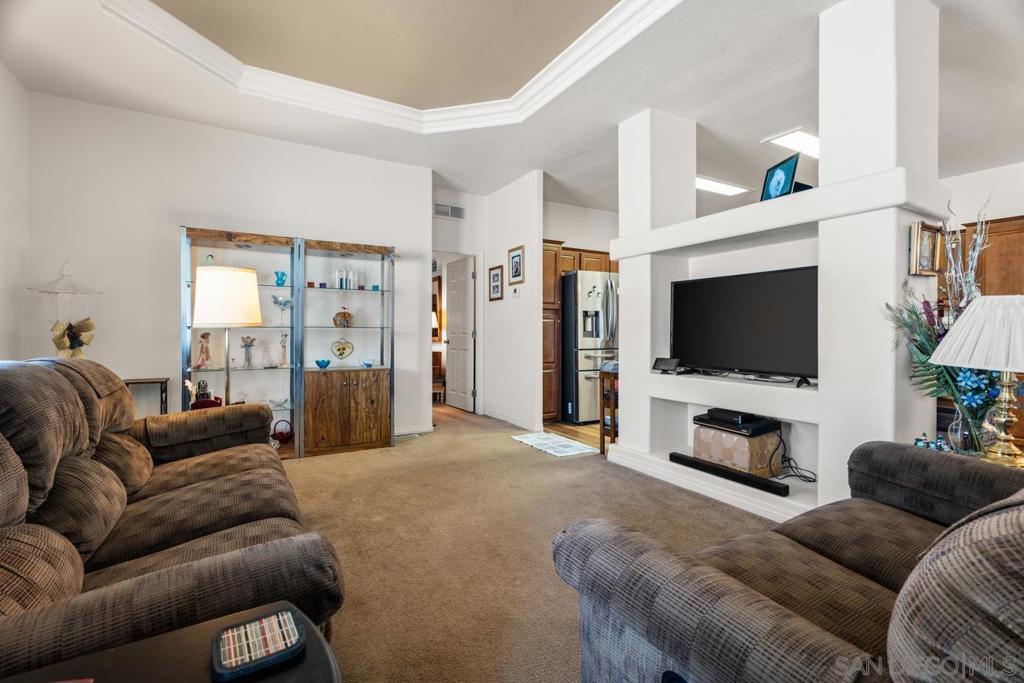 Welcome to easy, vibrant 55+ living in this beautifully maintained 3BR/2BA home built in 2011, offering comfort, space, and community connection. The open, airy floor plan features new kitchen flooring, central heat & AC, ceiling fans, and a spacious primary suite with jetted soaking tub and separate shower. Enjoy energy savings with a solar lease, plus convenient 3-car carport parking, storage shed, raised garden beds, and mature navel orange and tangerine trees. HOA is $350/Mo and includes water, trash and basic cable. VA approved Complex! Residents enjoy resort-style amenities including a pool, spa, clubhouse, library, fitness room, dog park, and an active social calendar with happy hours, lunches, and community events — perfect for relaxed, connected senior living. all plants and trees are on a drip system. Pet restrictions, 20 LB limit for dogs. White refrigerator in Laundry Room stays. Solar thru Good Leap. 12 panels, tesla battery.