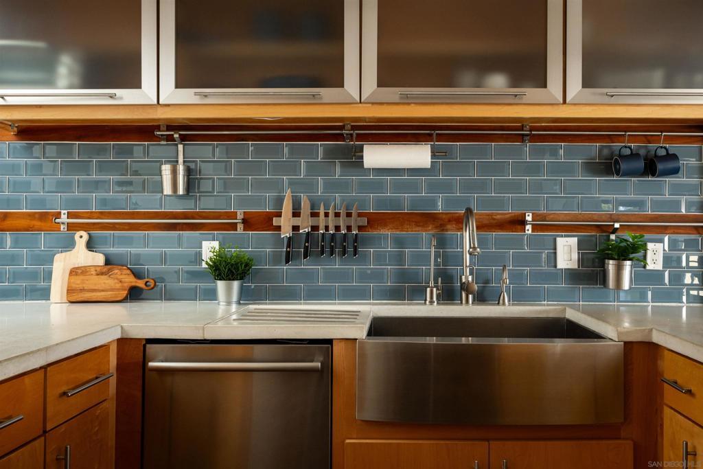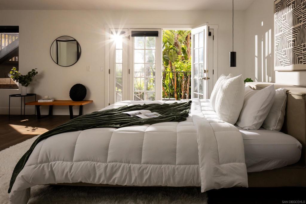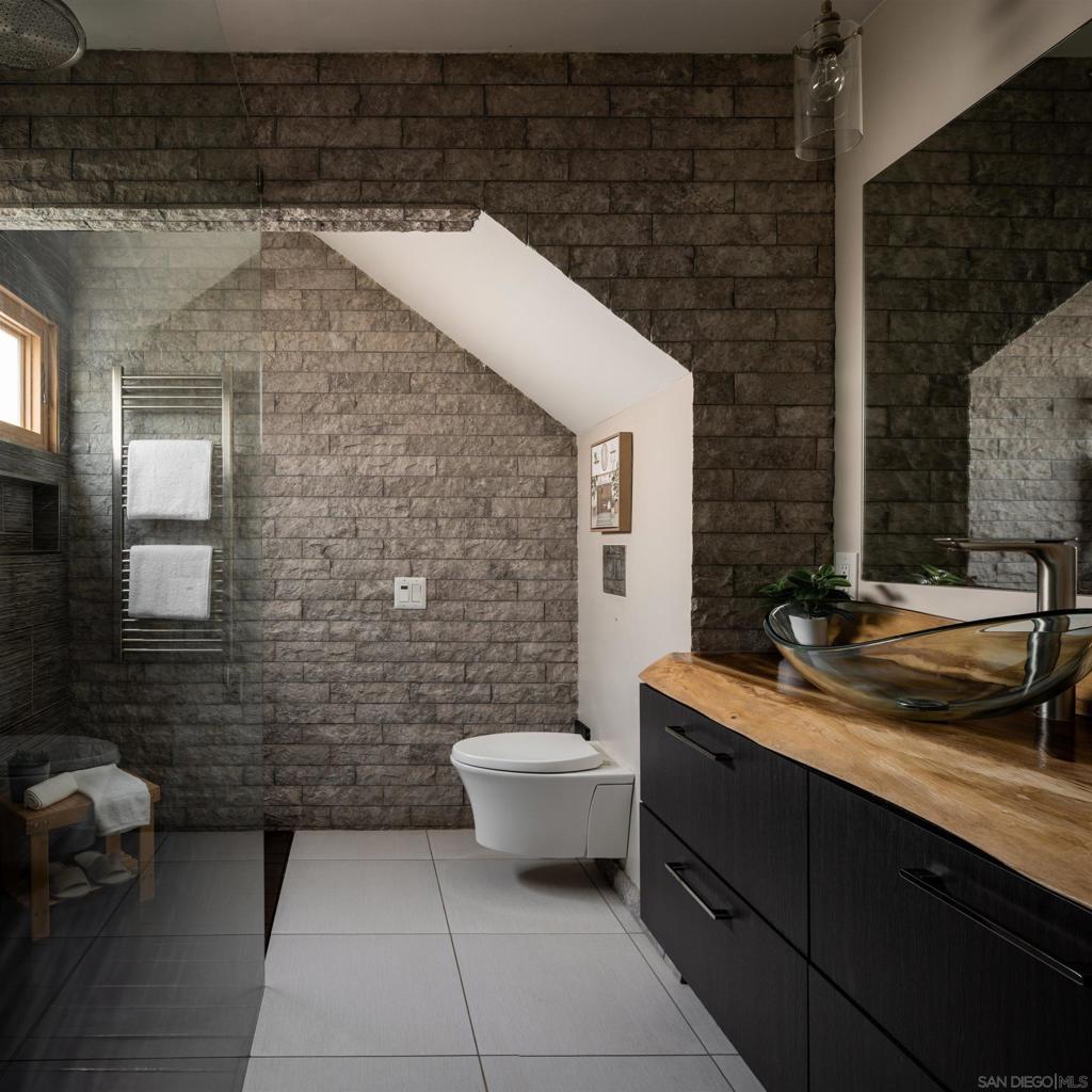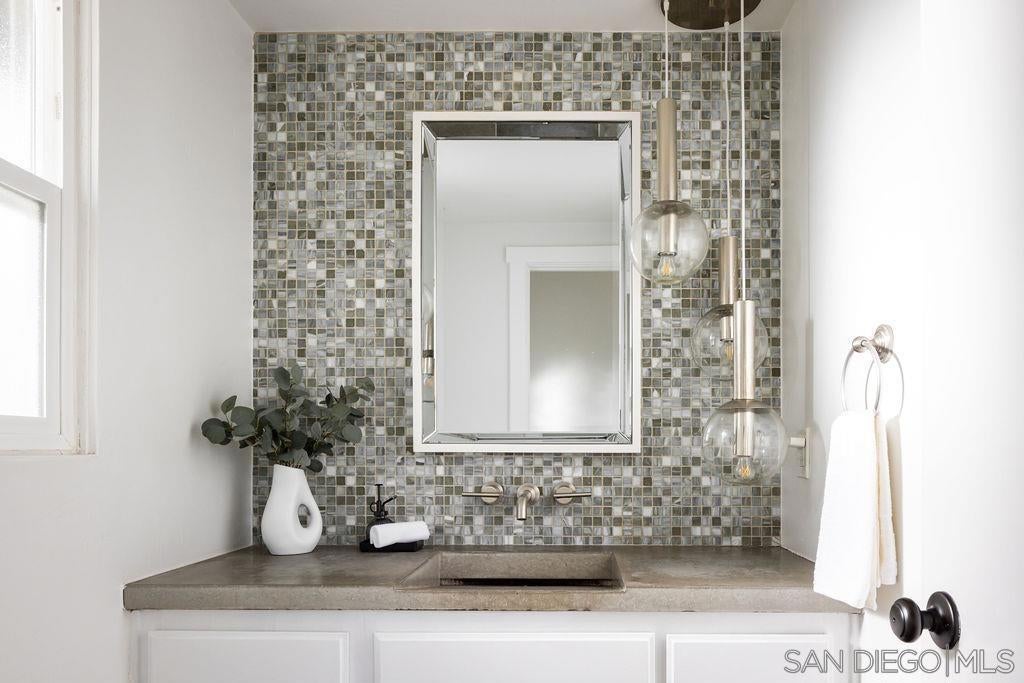 Introducing 698 Hygeia - a light and bright twinhome WEST OF I5 in the heart of Leucadia/Encinitas, easily WALKABLE to Beacon’s Beach, local shops and restaurants along the 101, and the Sunday Farmers Market. This beautifully updated home delivers the quintessential Encinitas beach lifestyle with the rare combination of privacy, flexibility, and modern upgrades. Offering nearly 2,000 SF, the home features main living areas and kitchen on the entry level, with 2 bedrooms plus a 3rd flex room downstairs. Originally a standard bedroom, the flex room has been upgraded with a kitchenette and can function as a guest suite, office, or multi-gen space. With separate ingress/egress, rooms 2 and 3 have also been utilized as a private short- and long-term rental with strong income history. The interior fills with natural light from multiple skylights and vaulted ceilings, and showcases premium modern finishes throughout. The kitchen features updated appliances, 2 built-in wine refrigerators, and a stylish dry bar. Enjoy sunset views with peekaboo ocean views, plus multiple patio/deck spaces for lounging. Step outside to a private backyard that feels like a tropical retreat, lined with mature palms, birds of paradise, bougainvillea, and lime, lemon, and passionfruit trees. The entertainer’s yard includes a built-in BBQ island and gas fireplace. Additional highlights include a large walk in closet in primary room, a private 2-car garage + 2 driveway spaces, owned SunRun solar, NO HOA, central A/C, EV charging, separate laundry room, and reverse osmosis water filtration.