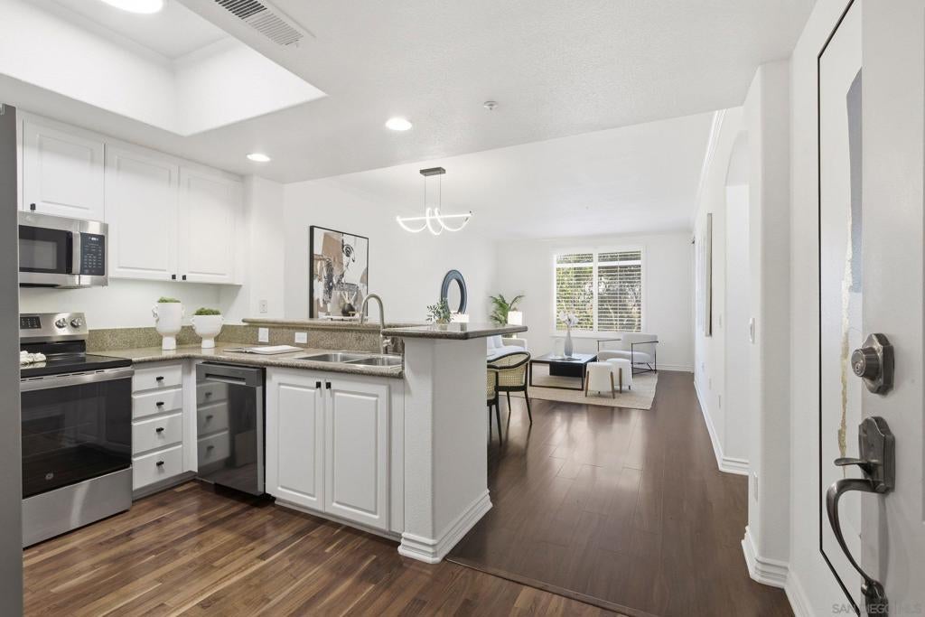 Welcome to Regents La Jolla, a private, gated, resort-style community in the heart of UTC. This spacious, move-in-ready one-bedroom residence features 9-foot ceilings, fresh interior paint, and abundant natural light throughout. The open-concept living space showcases granite countertops, recessed lighting, stainless steel LG and GE appliances, and counter seating—ideal for both everyday living and entertaining. Enjoy San Diego’s year-round climate from the attached balcony overlooking lush greenery, complete with a large private storage closet. Interior highlights include crown molding, plantation shutters, ceiling fans, and full-size in-unit laundry. The generously sized bedroom offers a large closet and direct access to the balcony. Includes one assigned, gated underground parking space. Residents of Regents La Jolla enjoy exceptional resort-style amenities including concierge service, pool and spa with cabanas, BBQ areas, clubhouse with billiards and theater, fitness center, yoga room, pet wash, business center, teaching kitchen, evening security, and more. Ideally located just minutes to UCSD, UTC Mall, dining, medical centers, and major freeways. One block to UCSD bus stops or an easy walk to campus, with quick access to La Jolla beaches, I-5, I-805, and Highway 52.